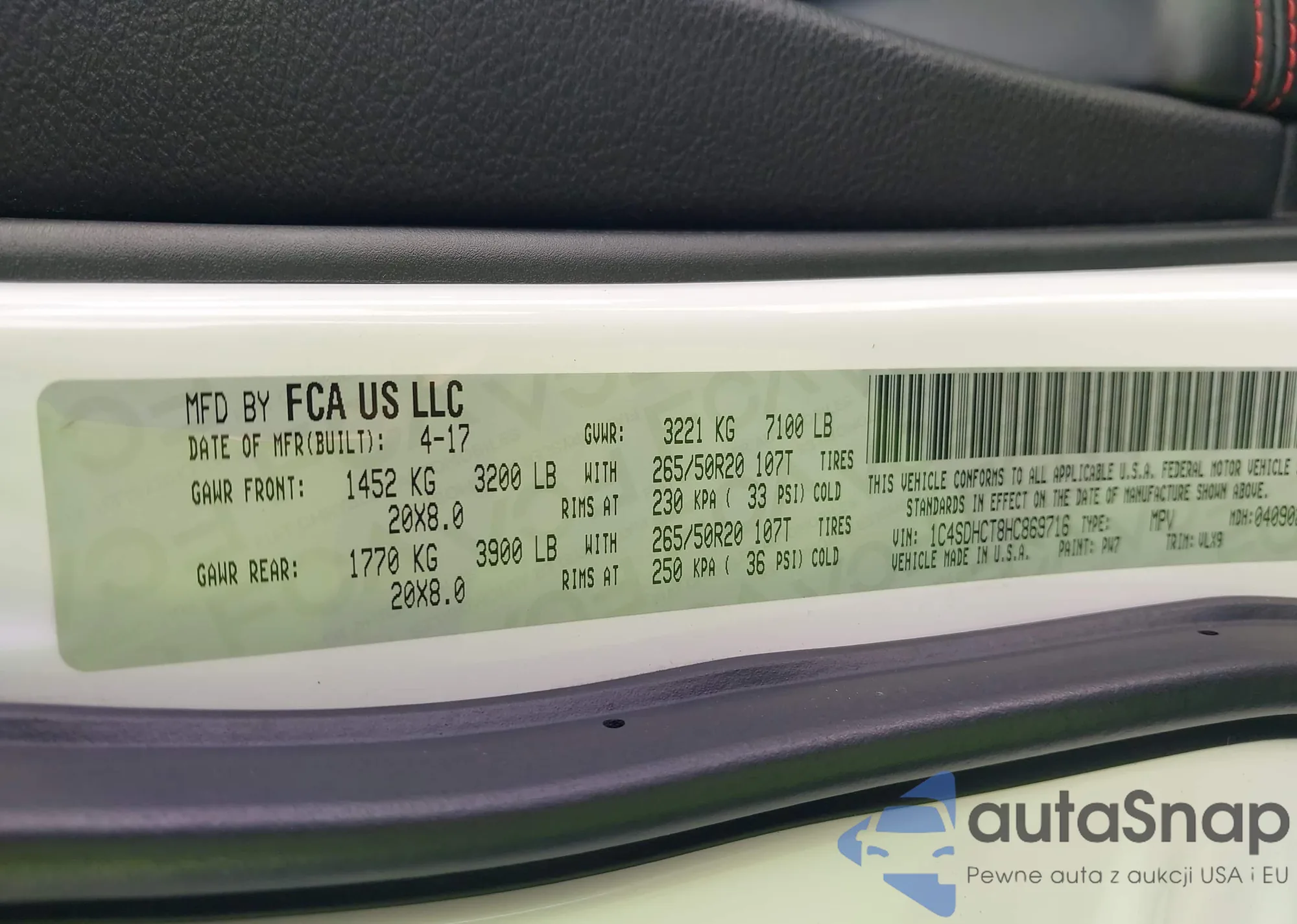 LOT: 43166006 VIN: 1C4SDHCT8HC869716