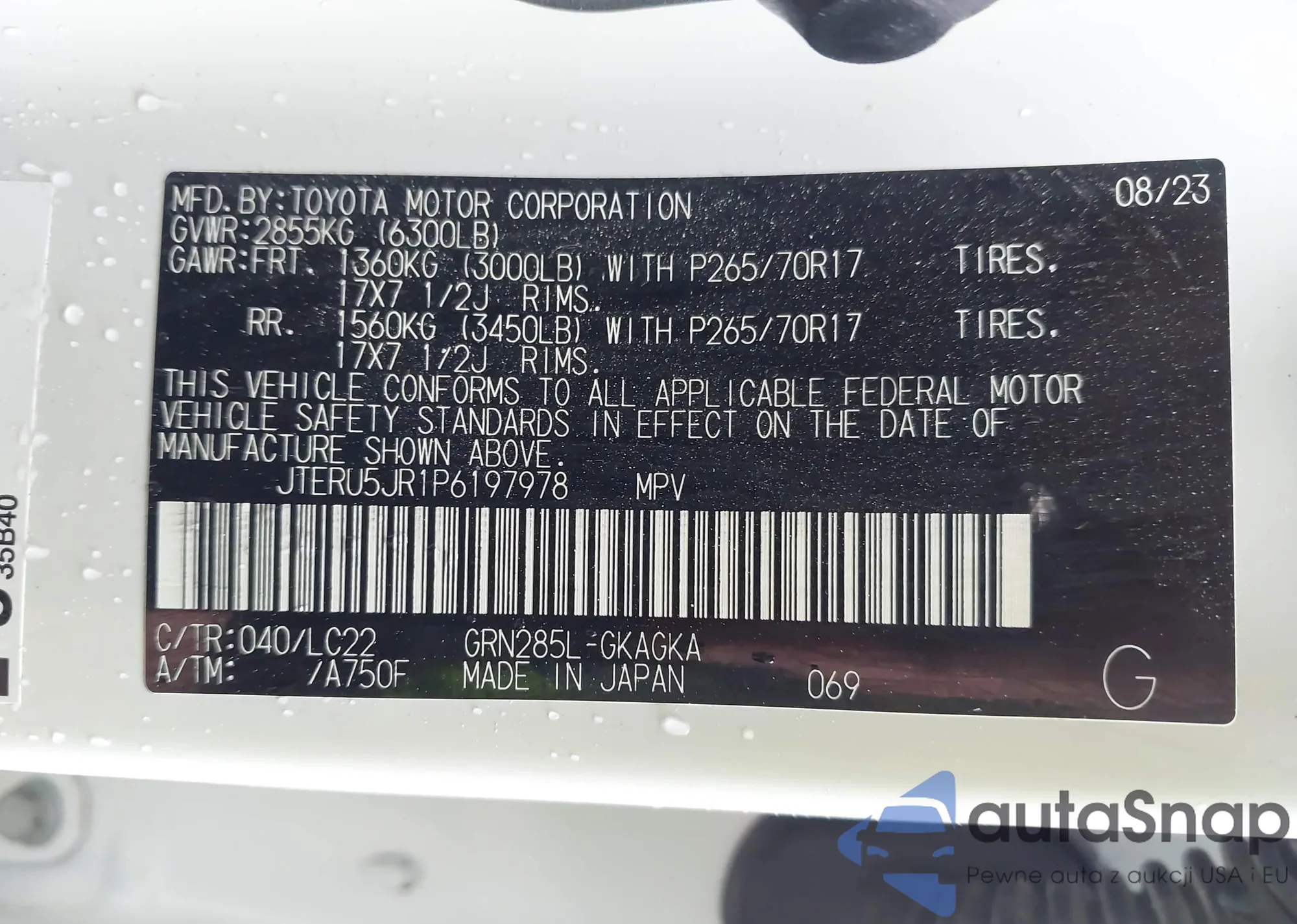 LOT: 43715273 VIN: JTERU5JR1P6197978