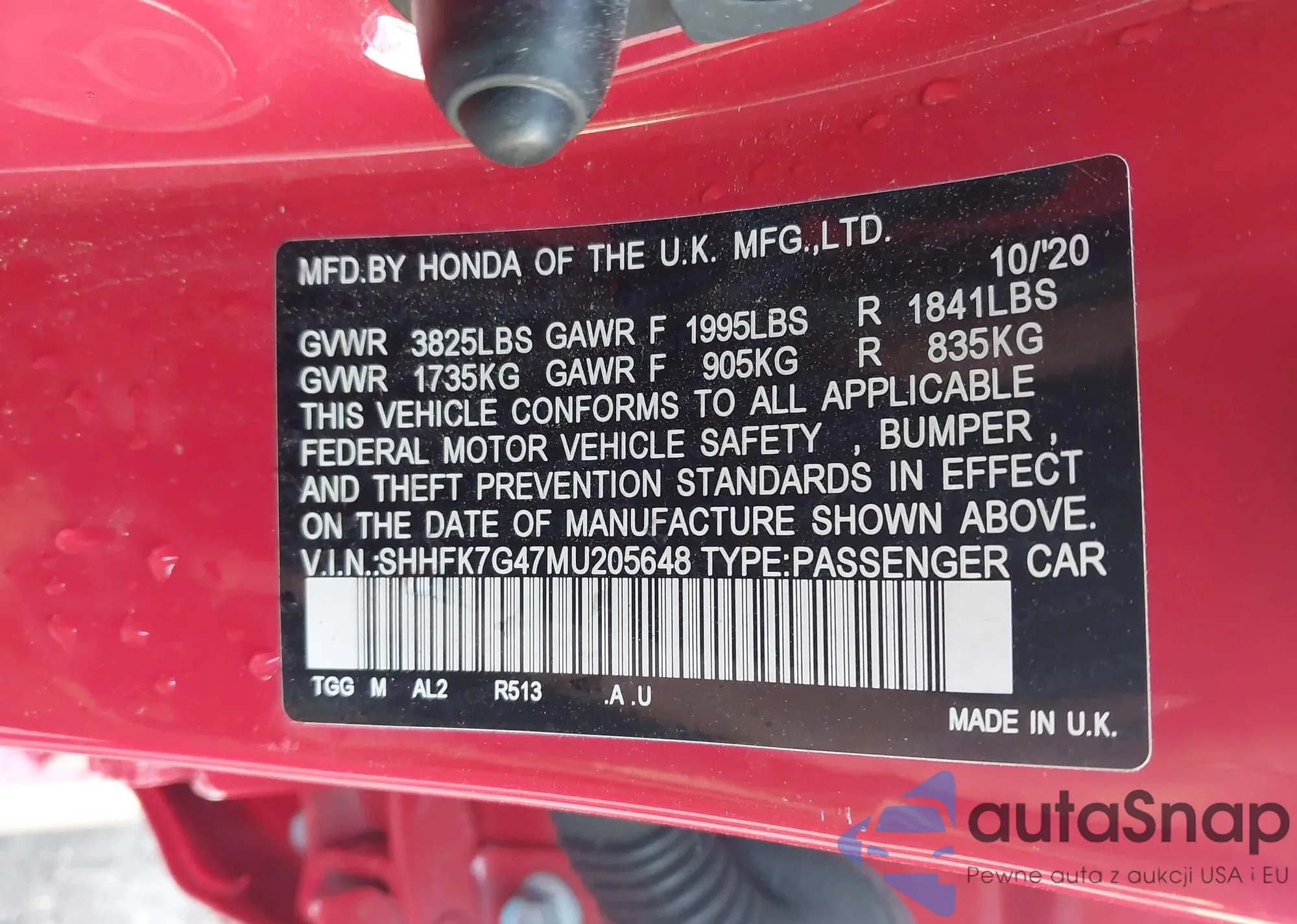• VIN SHHFK7G47MU205648