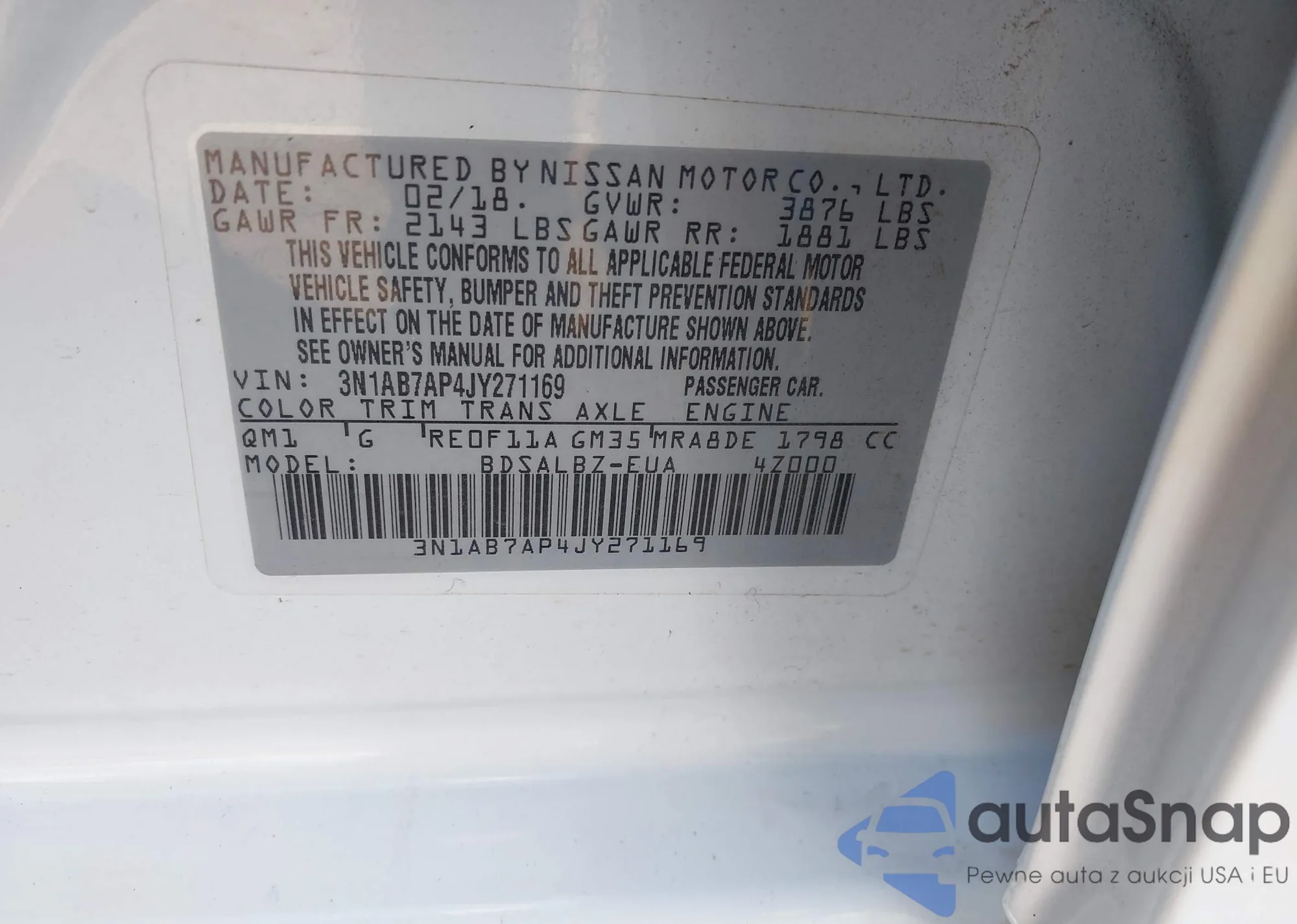 • VIN 3N1AB7AP4JY271169