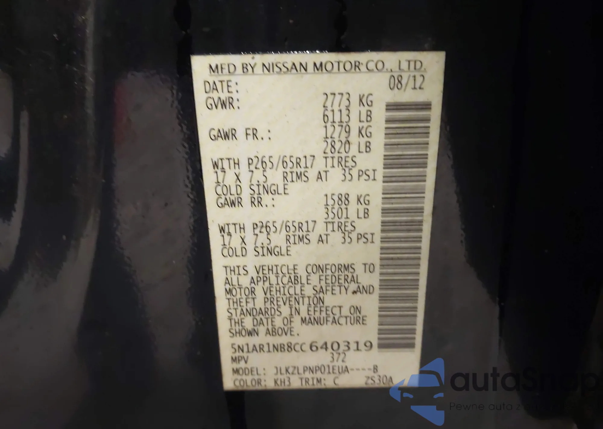• VIN 5N1AR1NB8CC640319