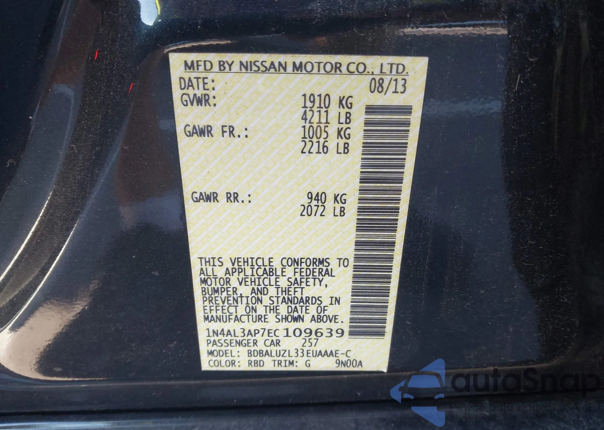 LOT: 43499677 VIN: 1N4AL3AP7EC109639