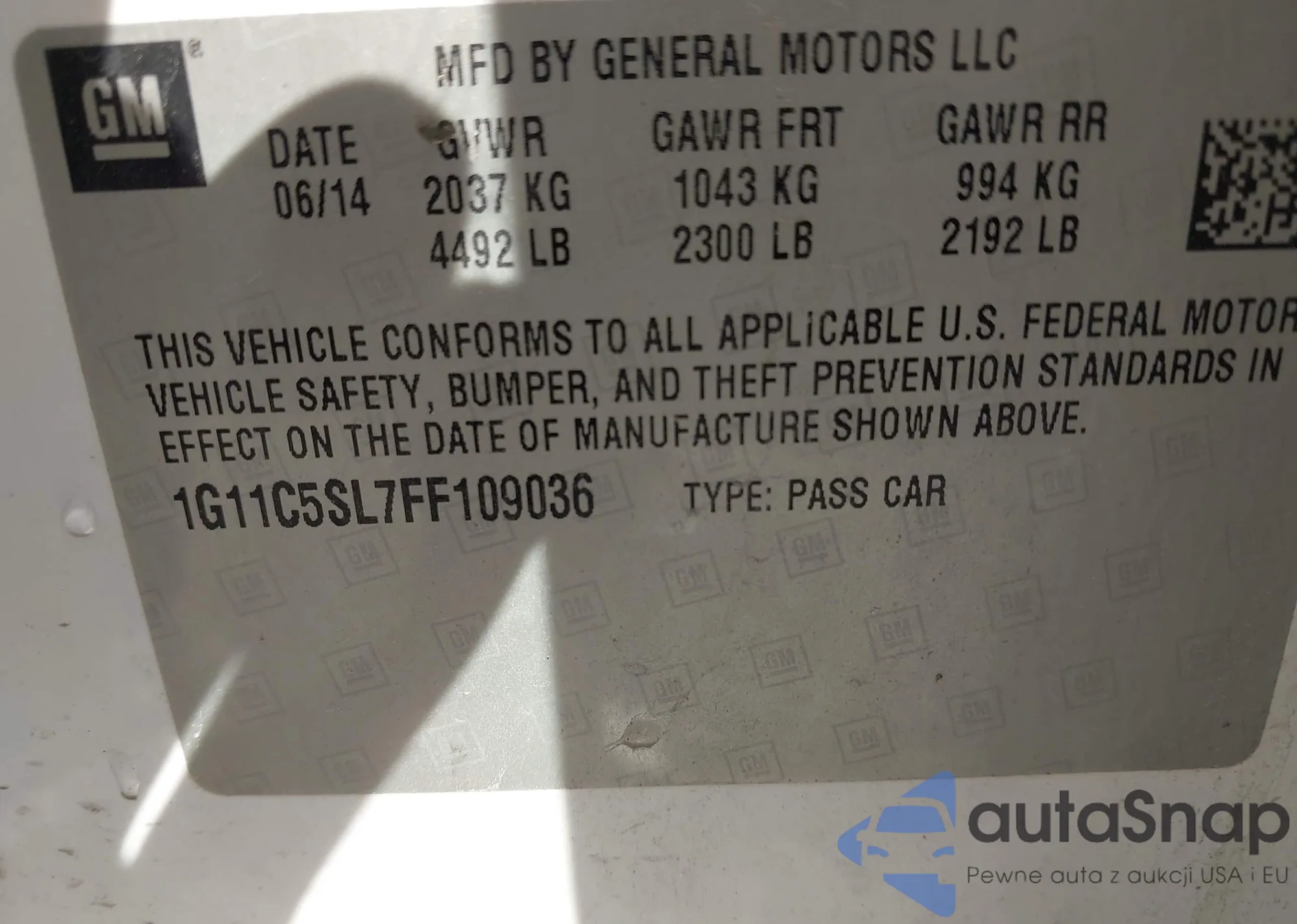 LOT: 43354147 VIN: 1G11C5SL7FF109036