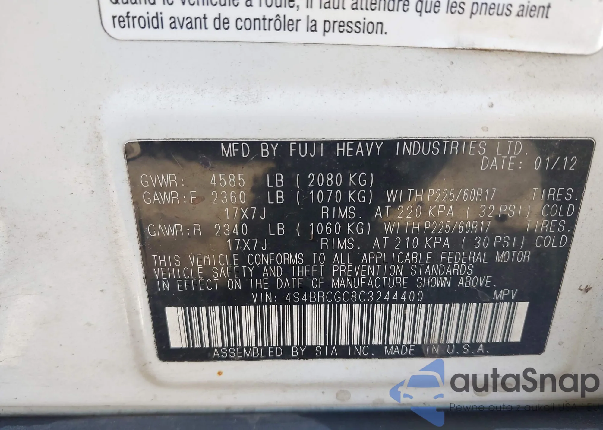 LOT: 43477972 VIN: 4S4BRCGC8C3244400