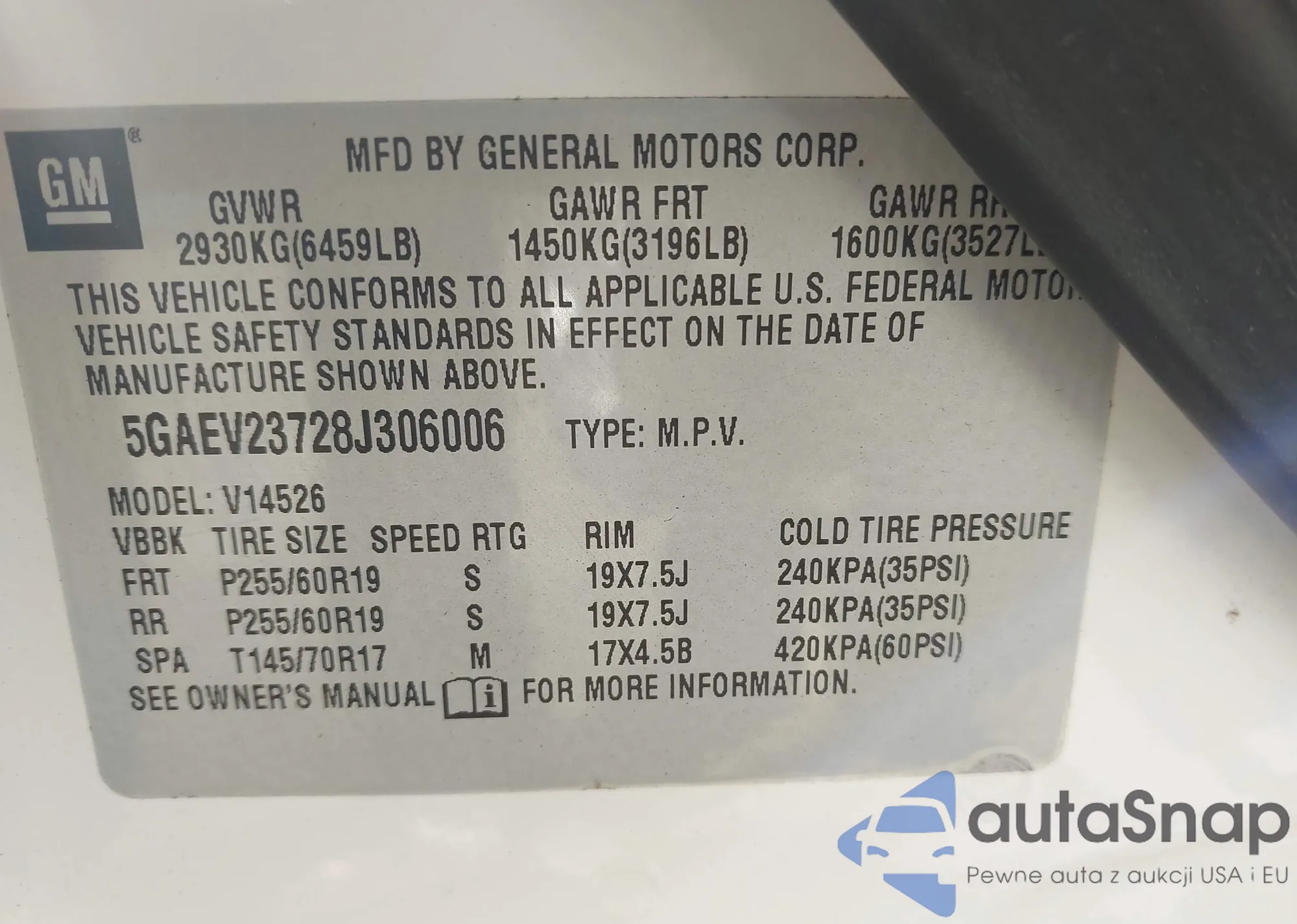 • VIN 5GAEV23728J306006