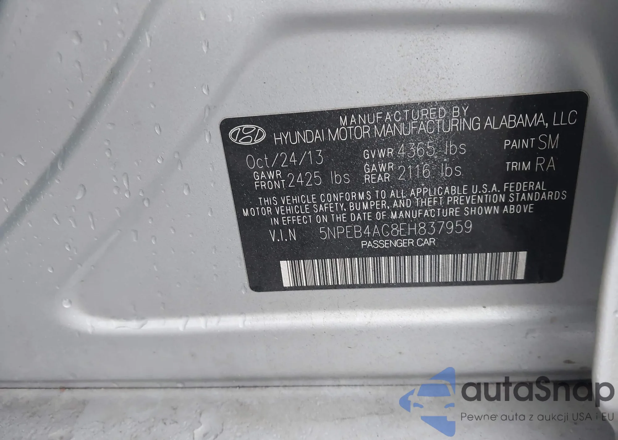 • VIN 5NPEB4AC8EH837959