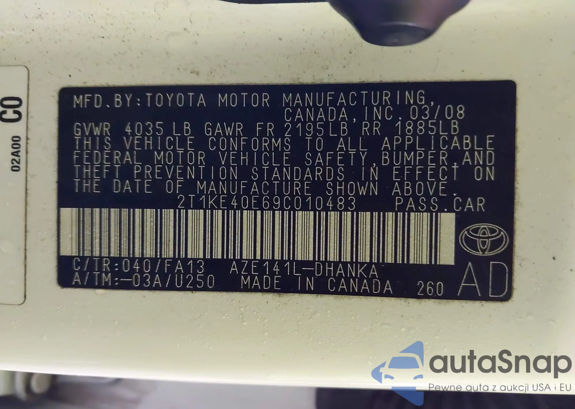 • VIN 2T1KE40E69C010483