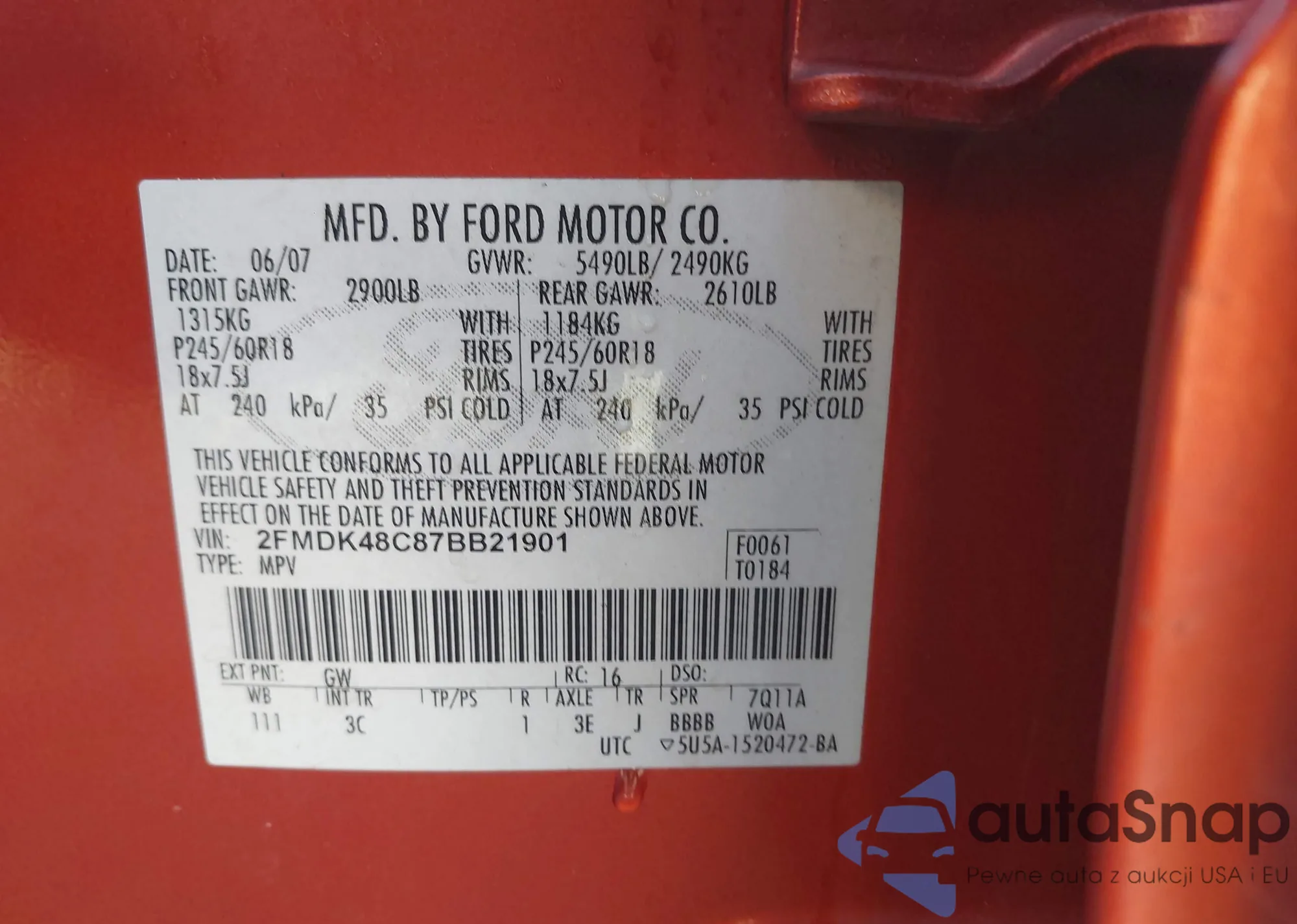 • VIN 1D8GU58KX7W608879
