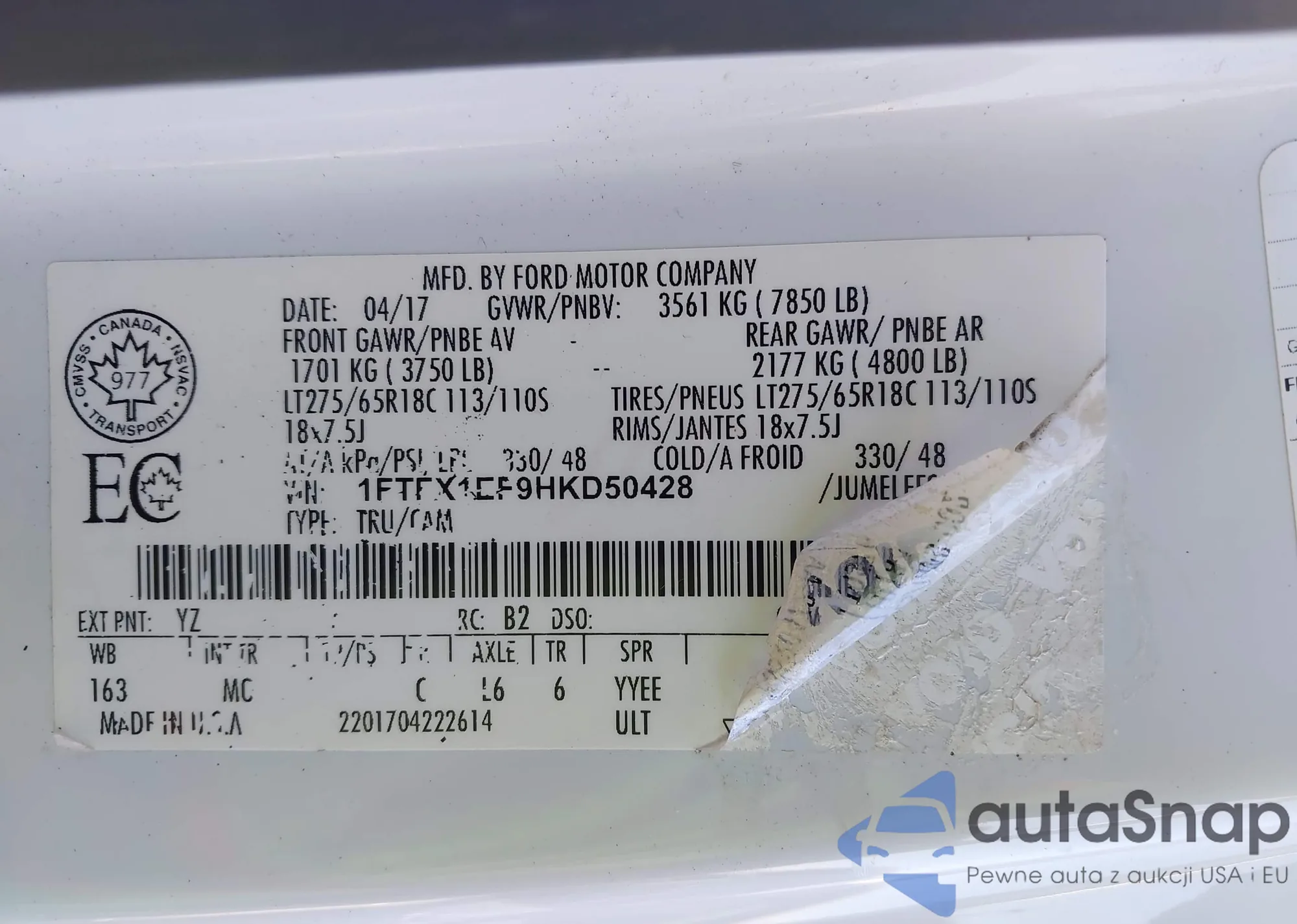 • VIN 1FTFX1EF9HKD50428
