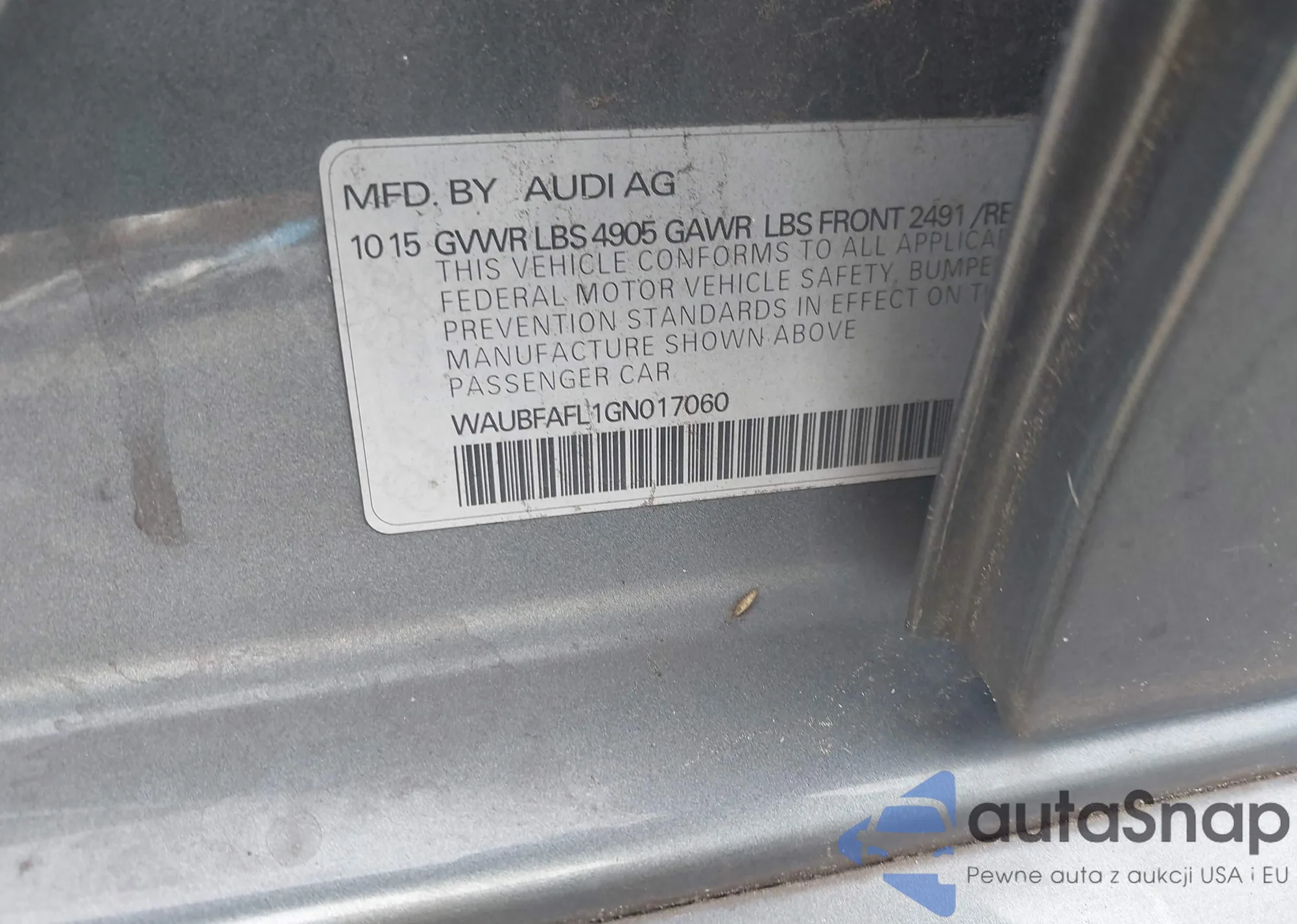 LOT: 43608656 VIN: WAUBFAFL1GN017060