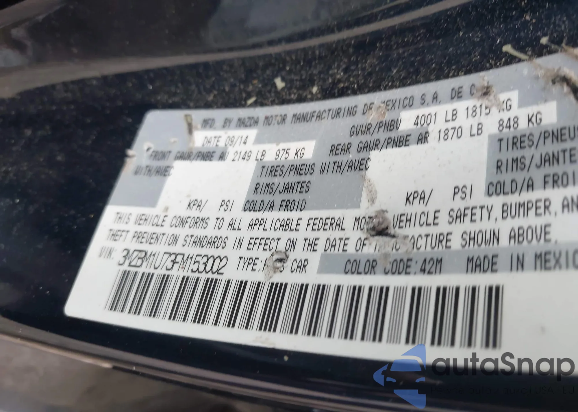 • VIN 3MZBM1U73FM153002