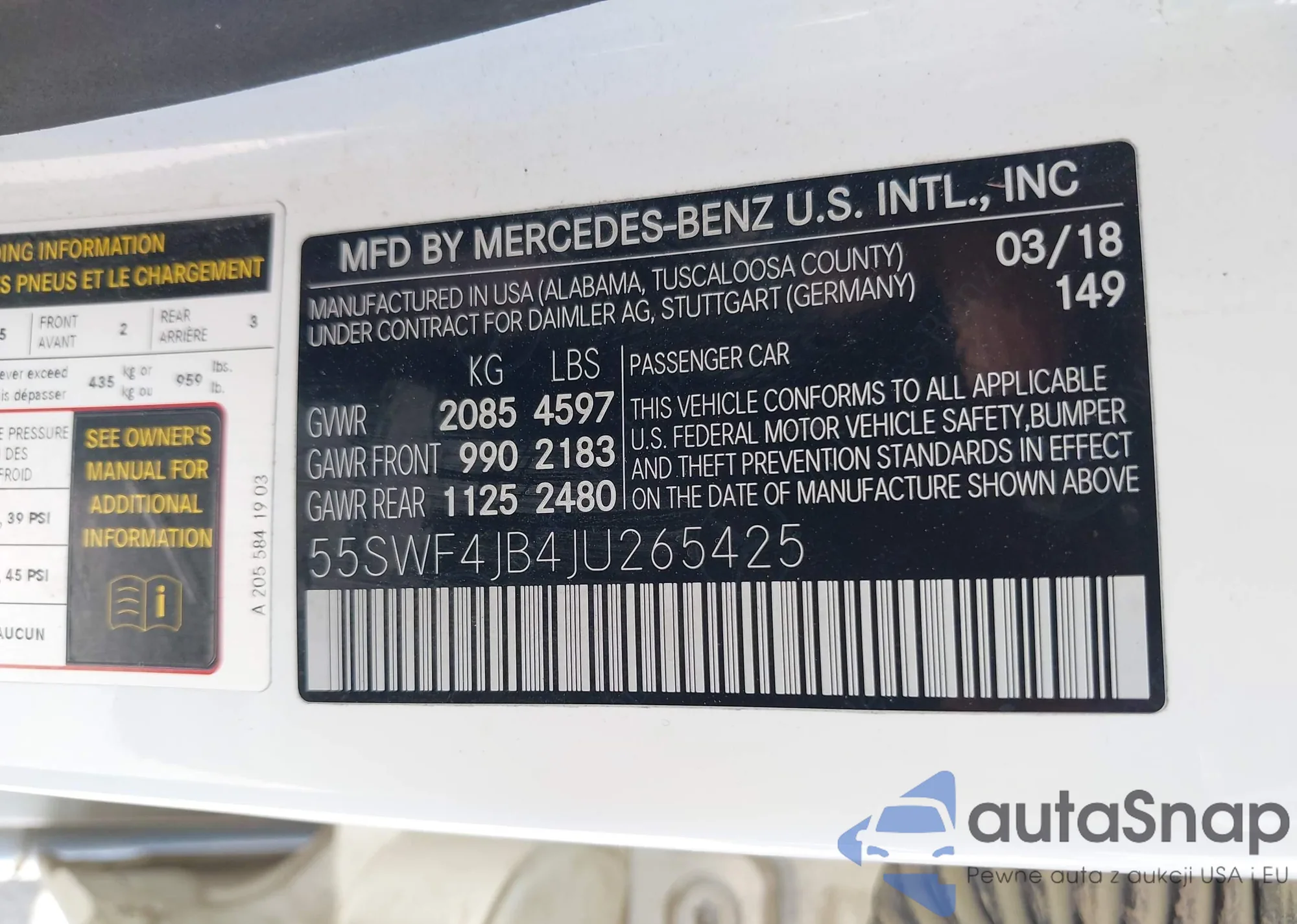 • VIN 55SWF4JB4JU265425