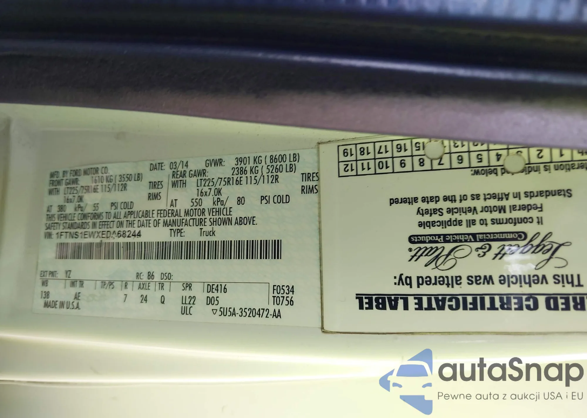 • VIN 1FTNS1EWXEDA68244