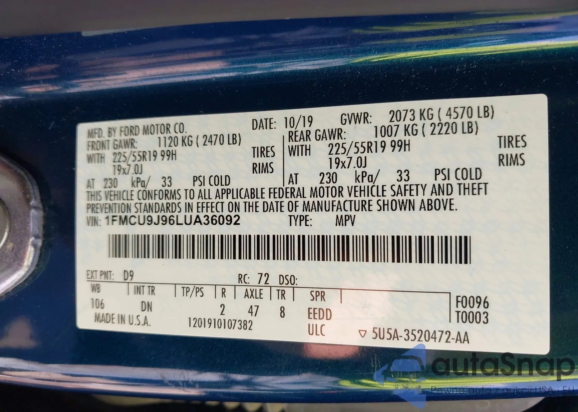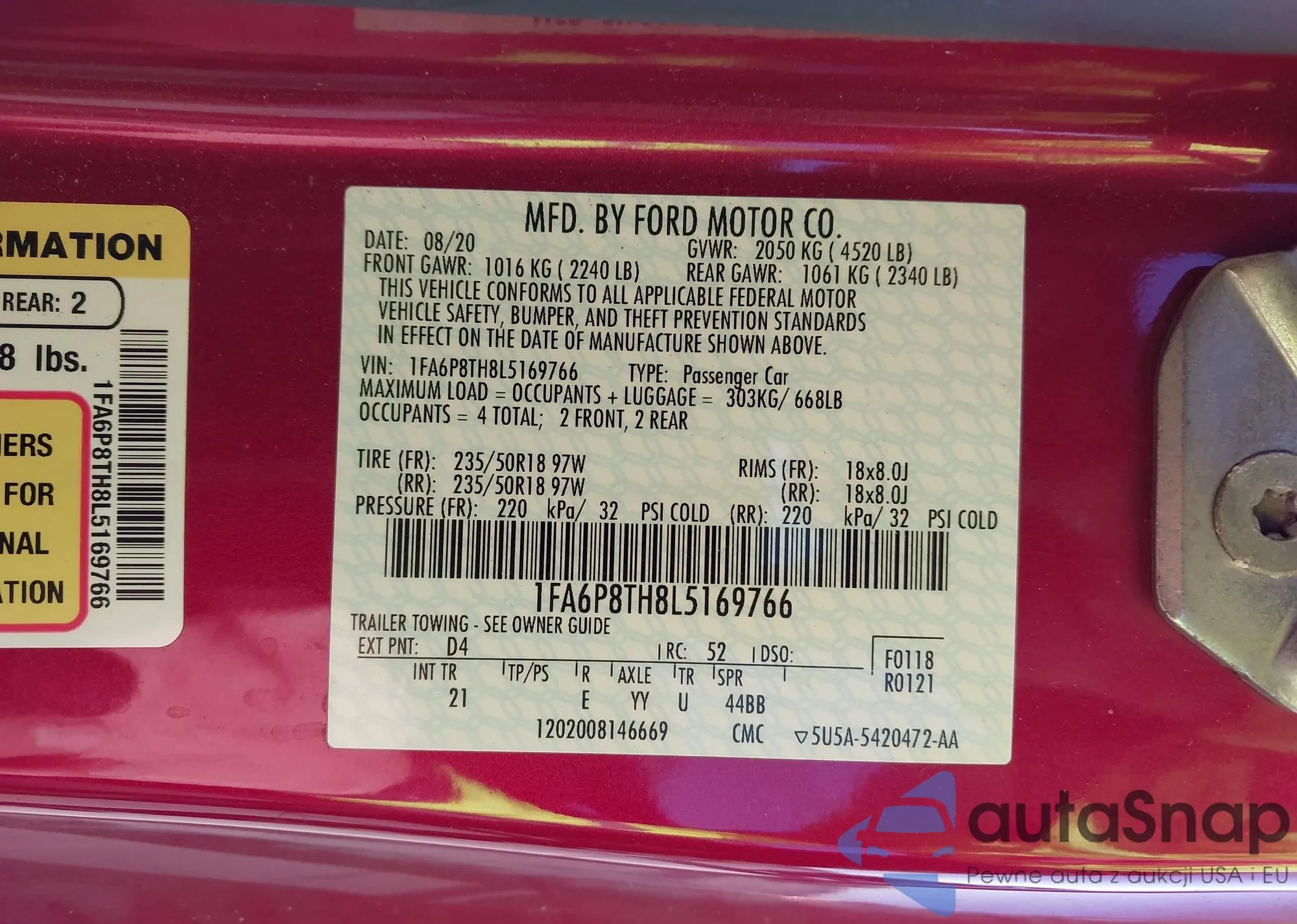 LOT: 43357933 VIN: 1FA6P8TH8L5169766