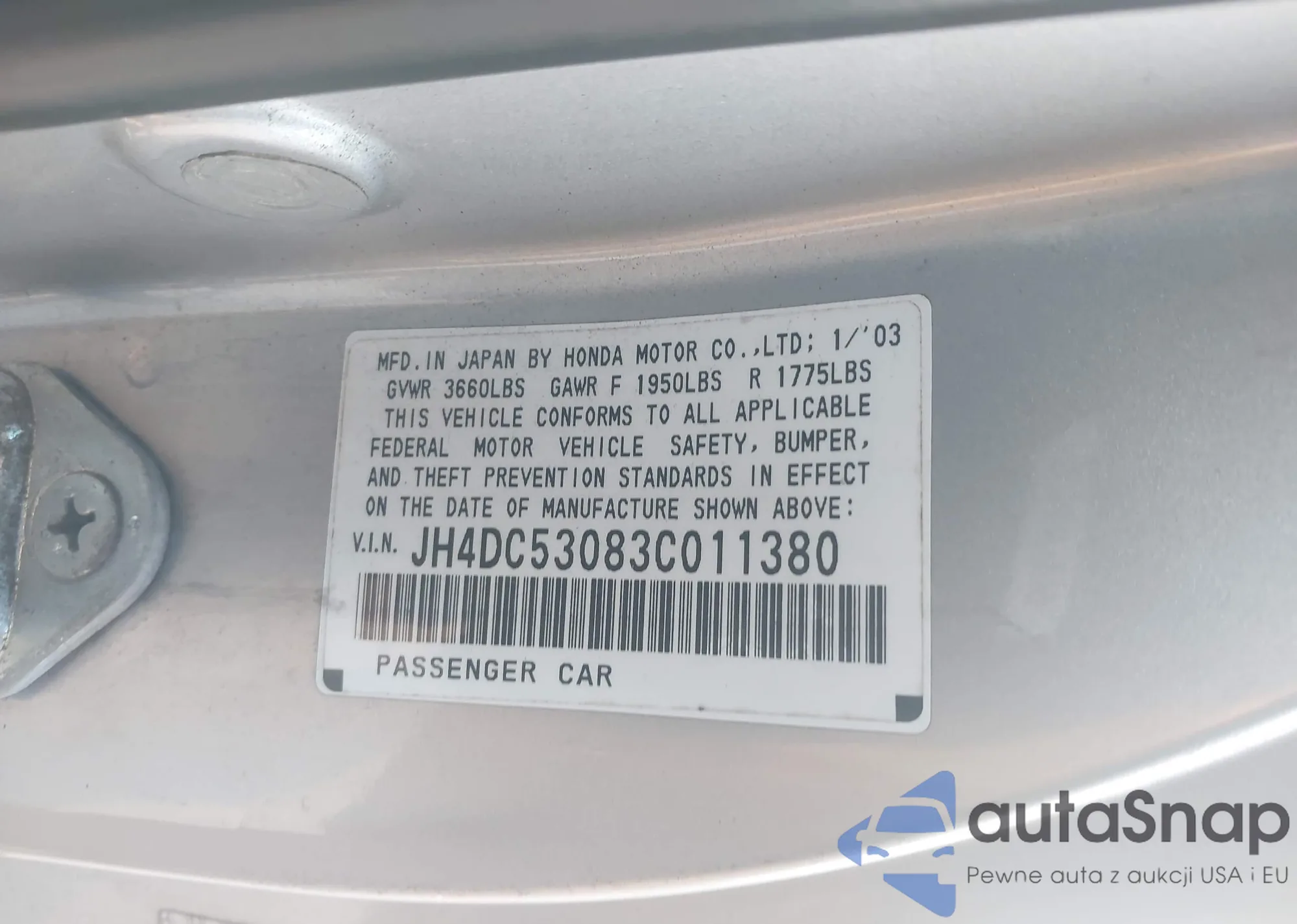 LOT: 43459523 VIN: JH4DC53083C011380