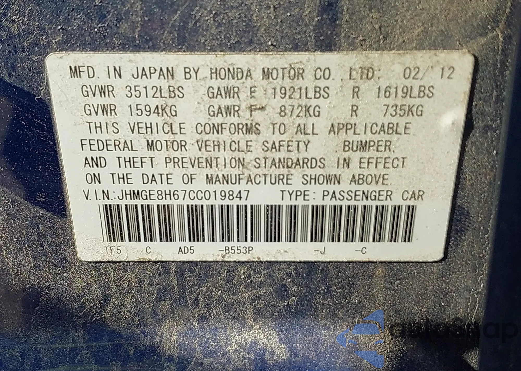 LOT: 43302699 VIN: KMHDH4AE0CU283231