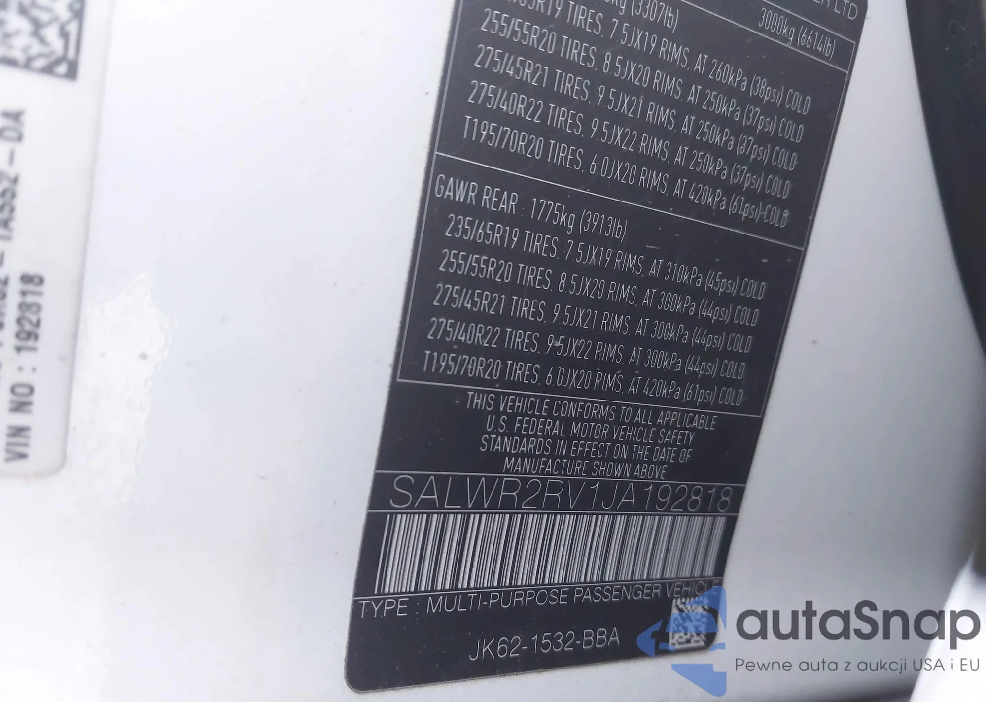 • VIN SALWR2RV1JA192818