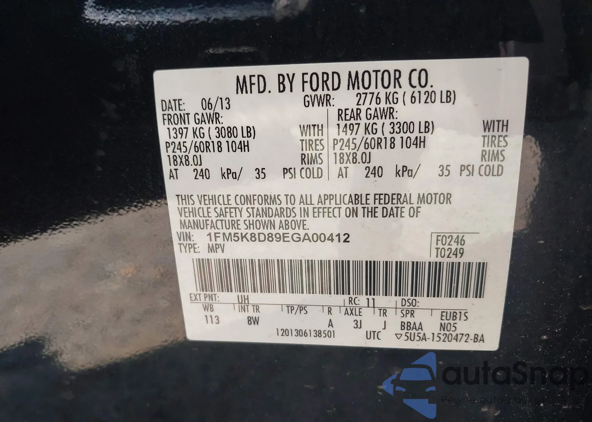 LOT: 40054668 VIN: 5TFJX4GN7EX036873