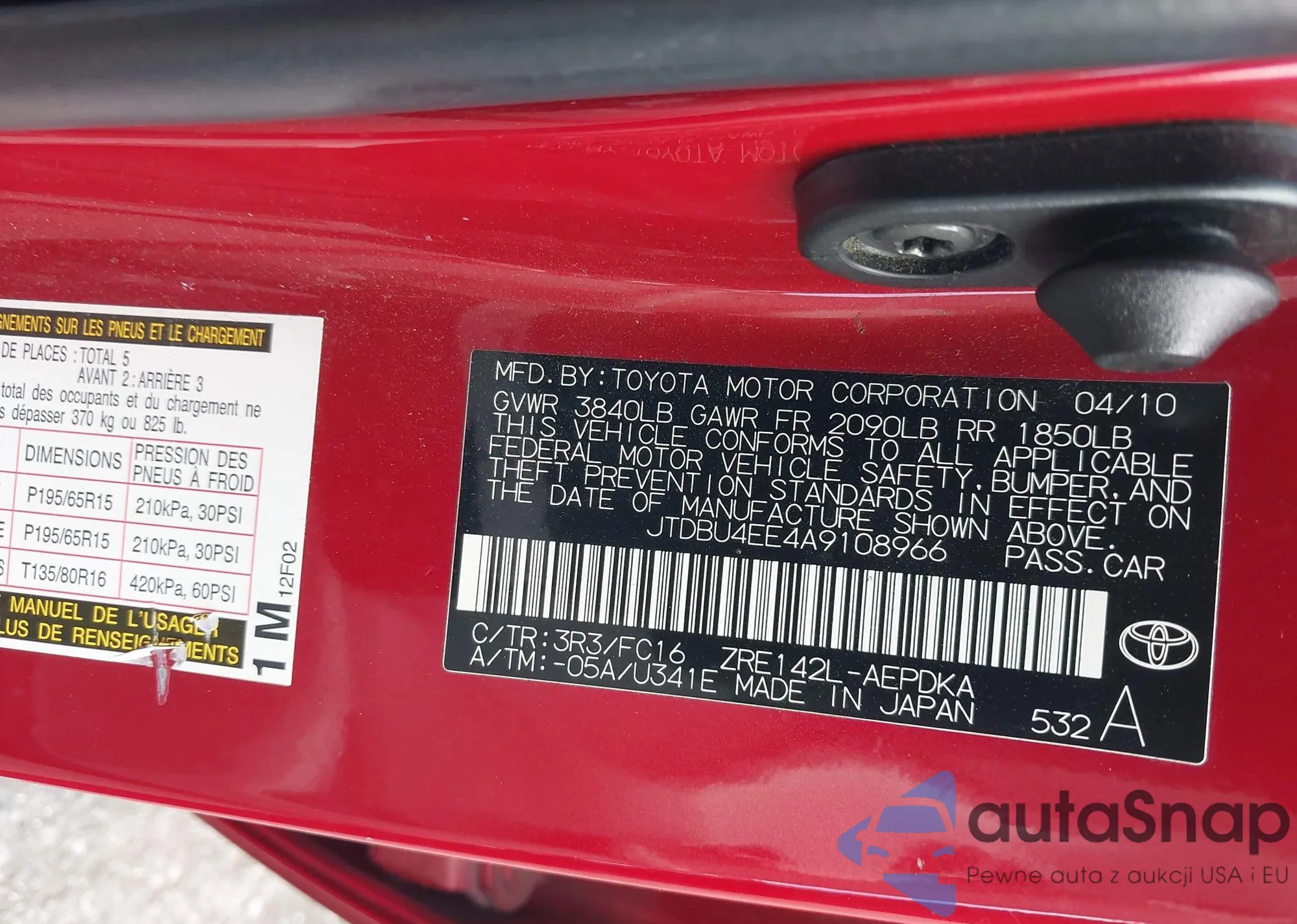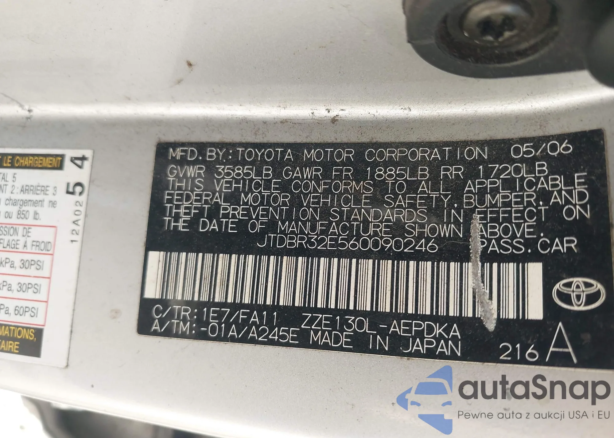 LOT: 43600222 VIN: JTDBR32E560090246