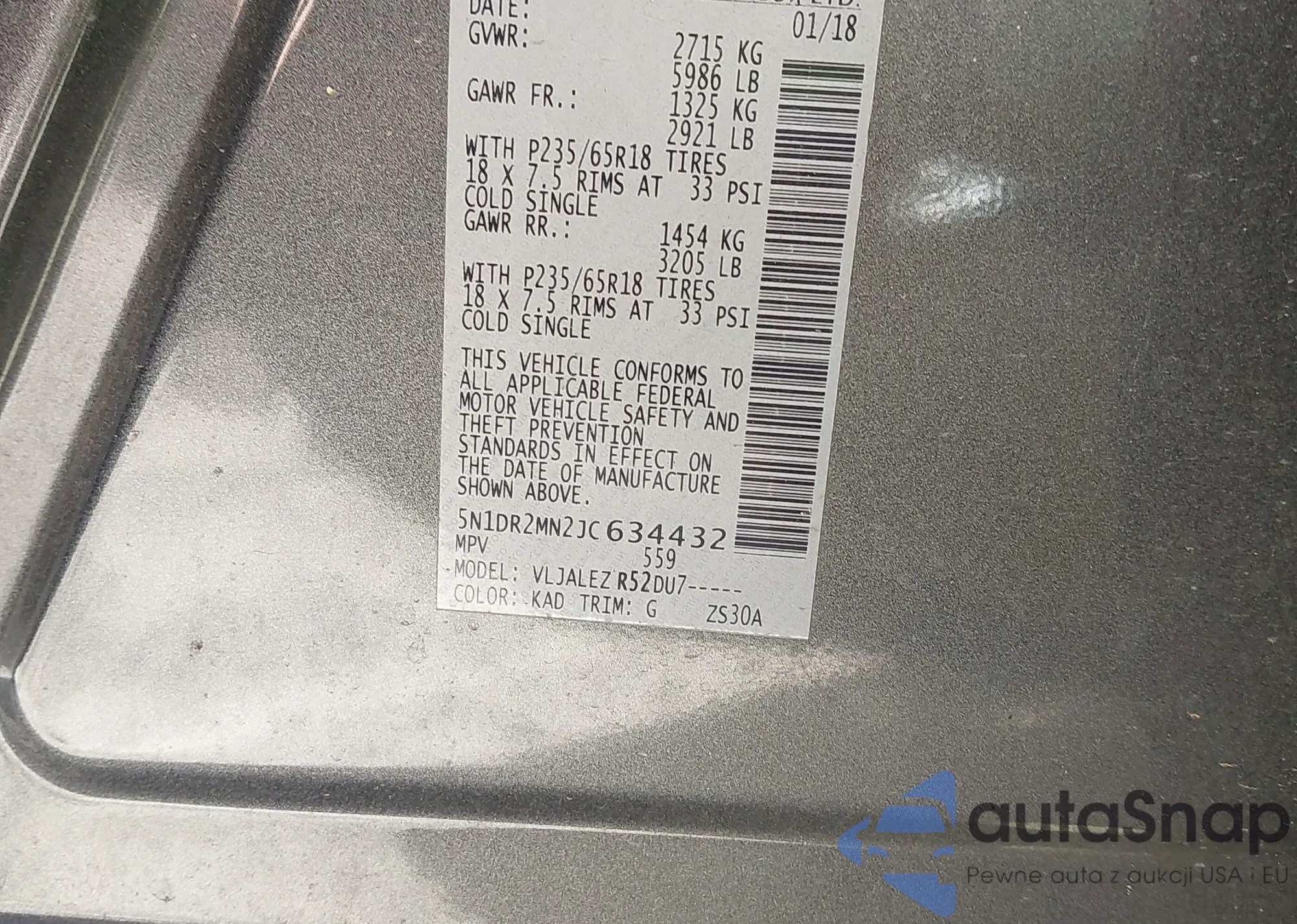 LOT: 43595420 VIN: JN1FV7AR3JM480193