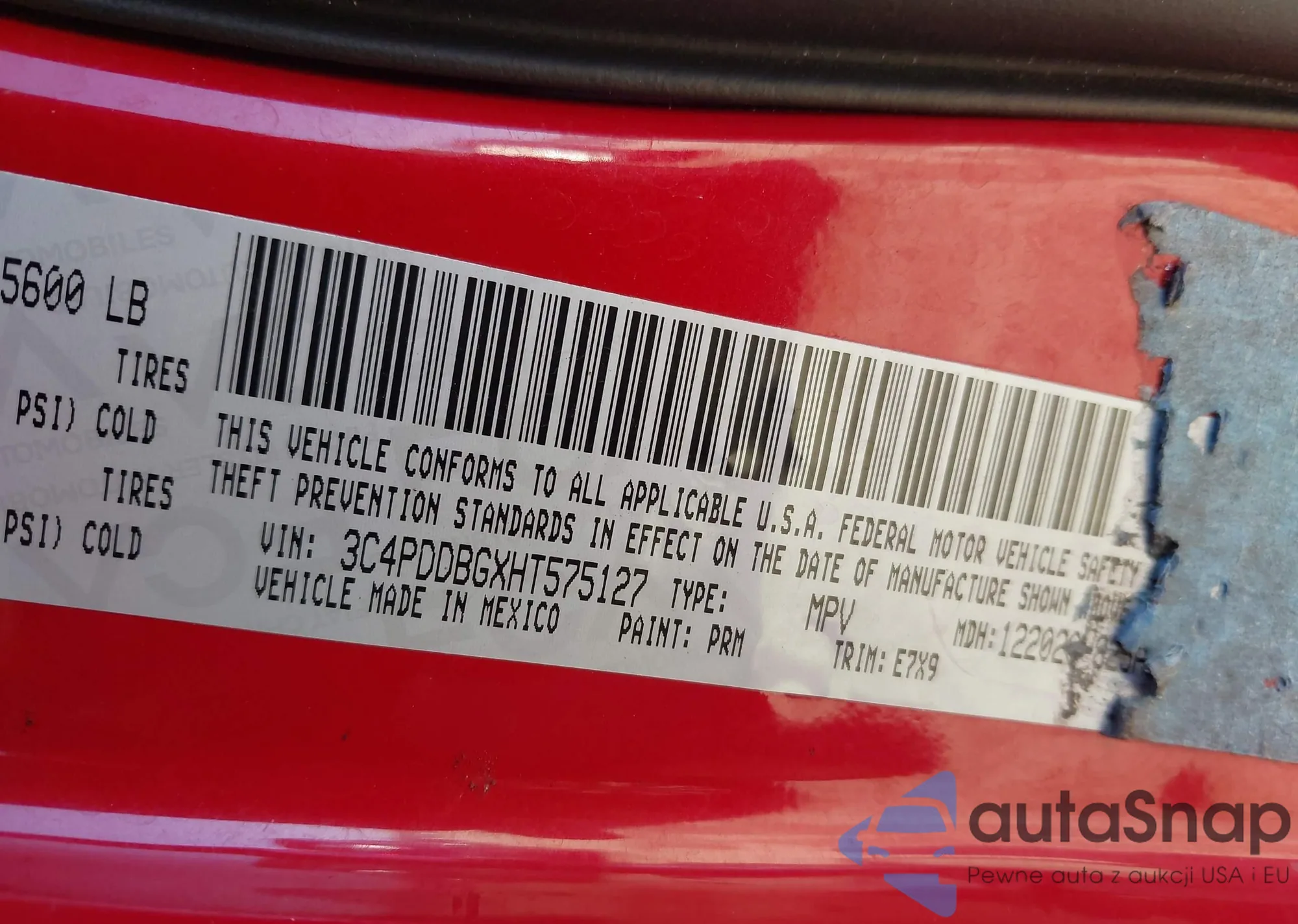 LOT: 43655891 VIN: 3C4PDDBGXHT575127