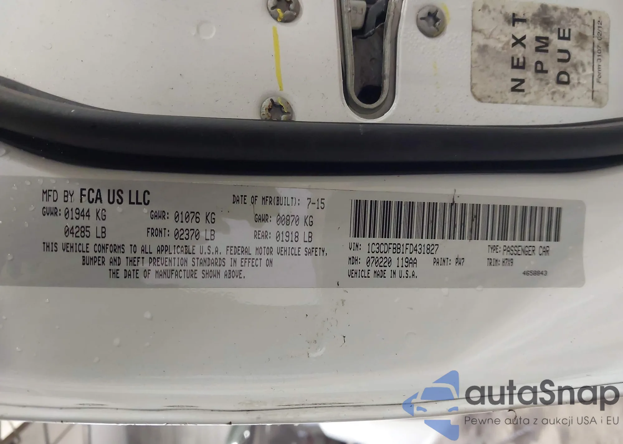 • VIN 1C3CDFBB1FD431827