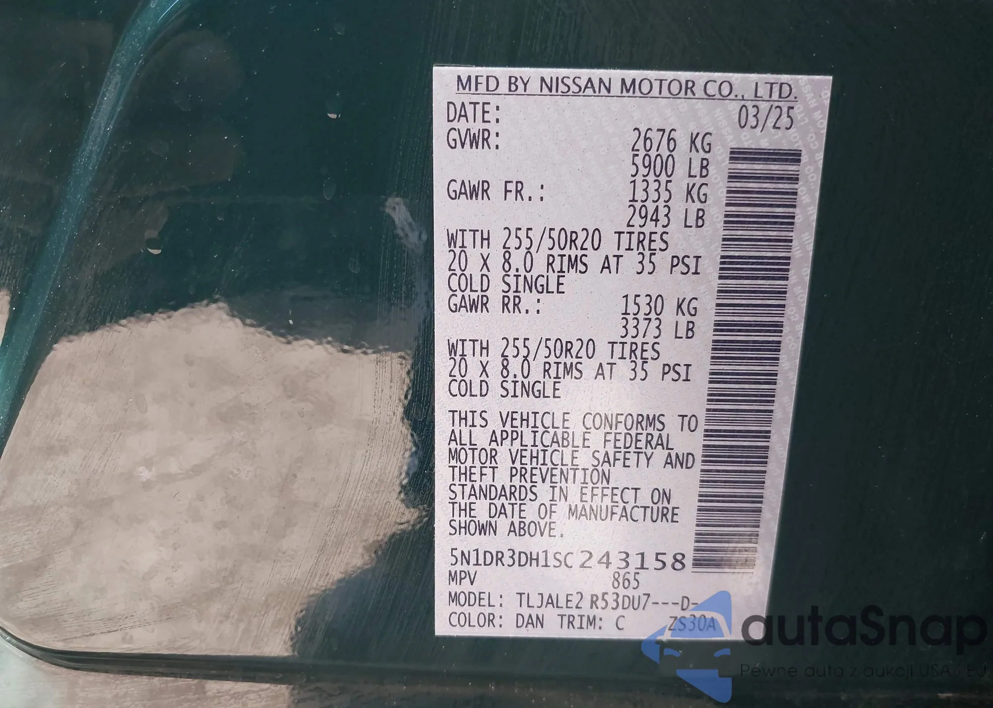 LOT: 43297611 VIN: 5N1DR2BN6LC607336