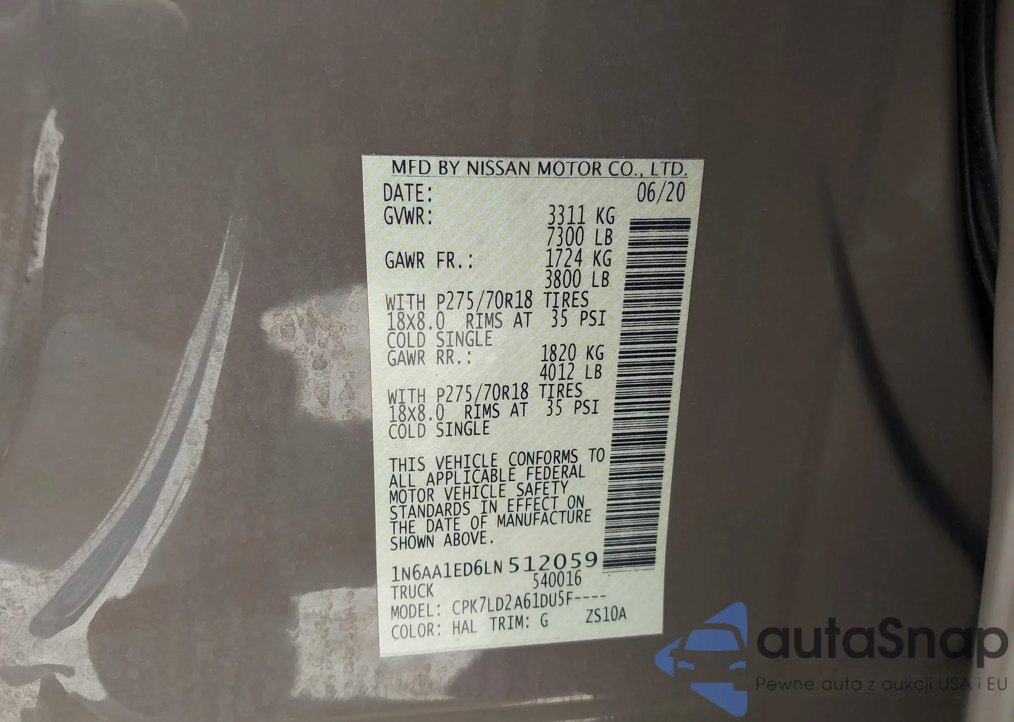 • VIN 1N6AA1ED6LN512059