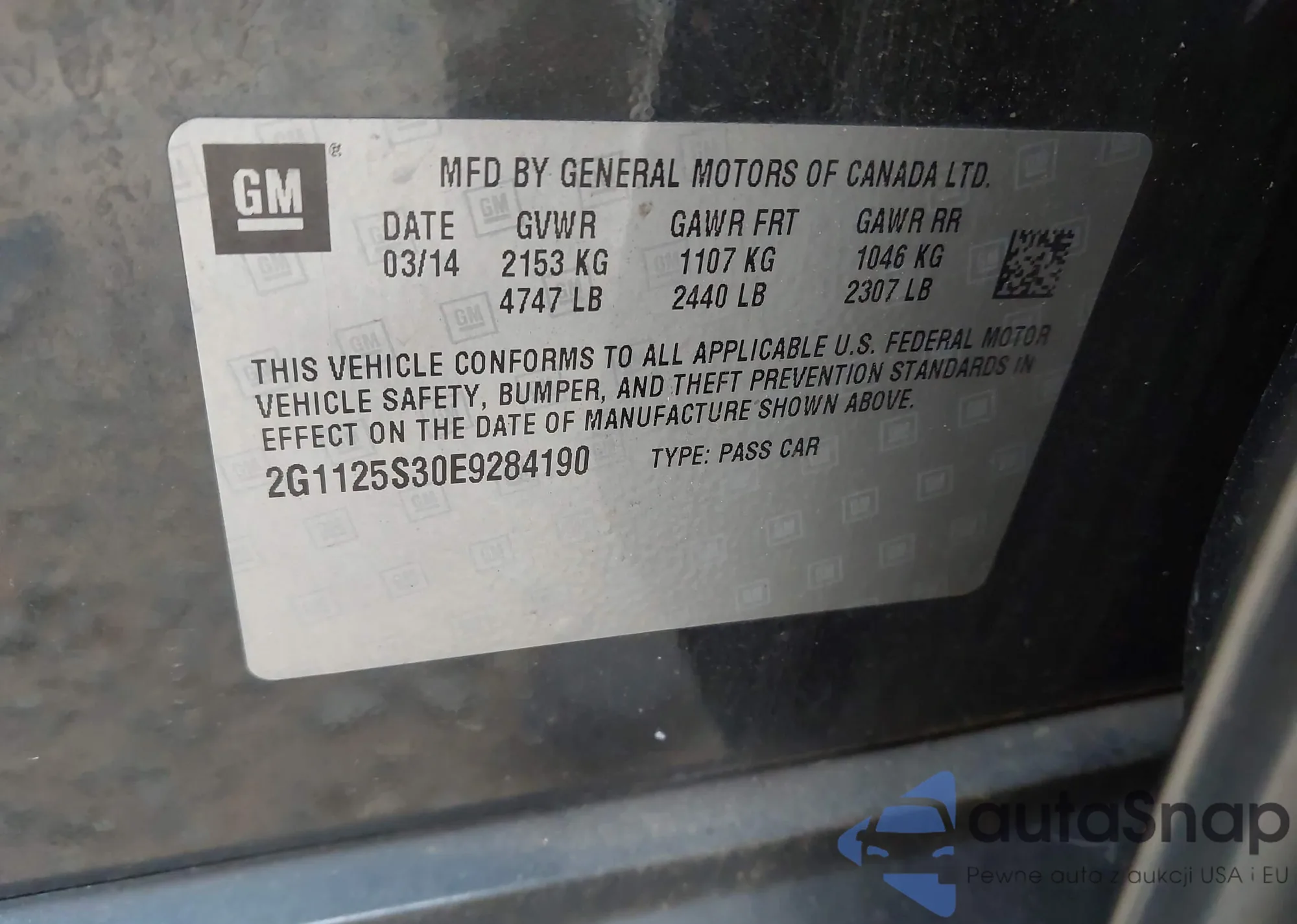 • VIN 2G1125S30E9284190