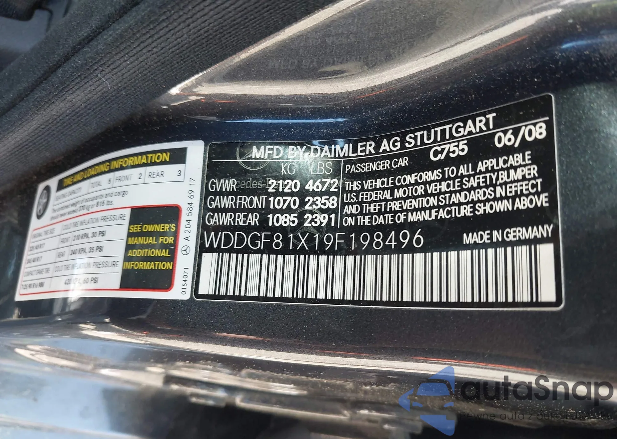 • VIN WDDGF81X19F198496