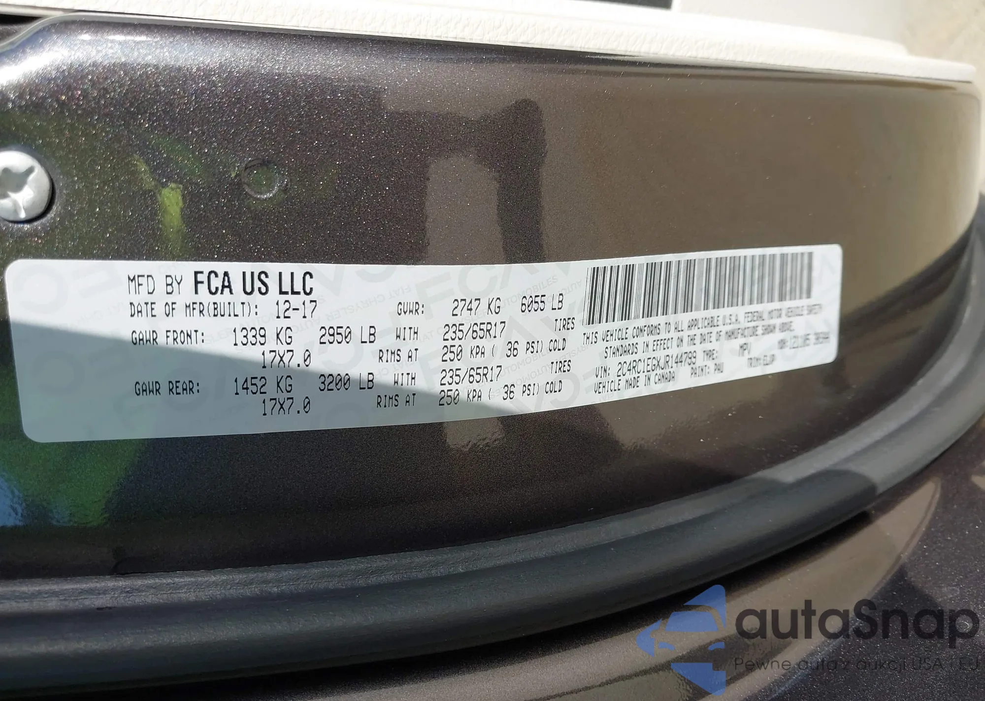 • VIN 2C4RC1EGXJR144799