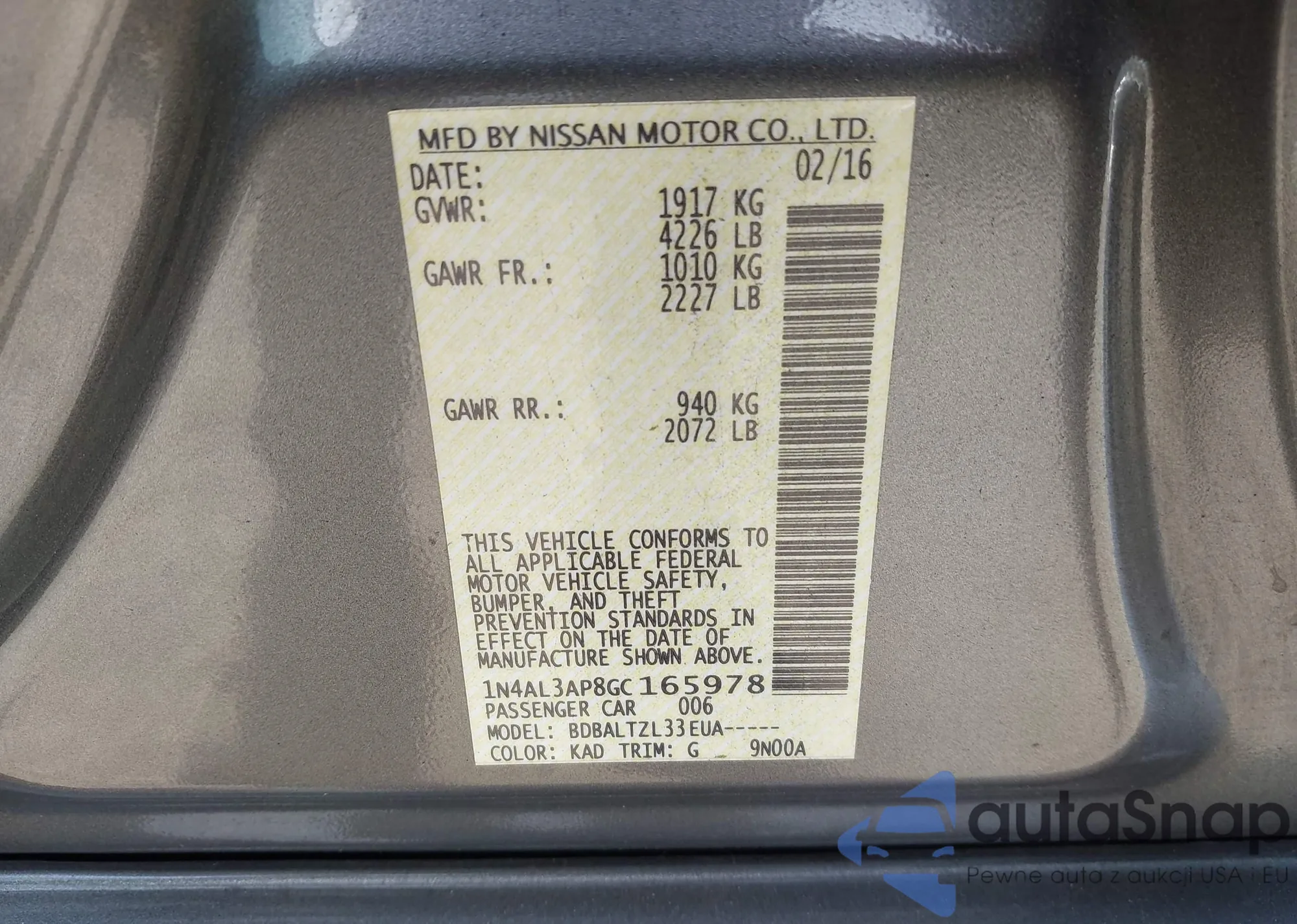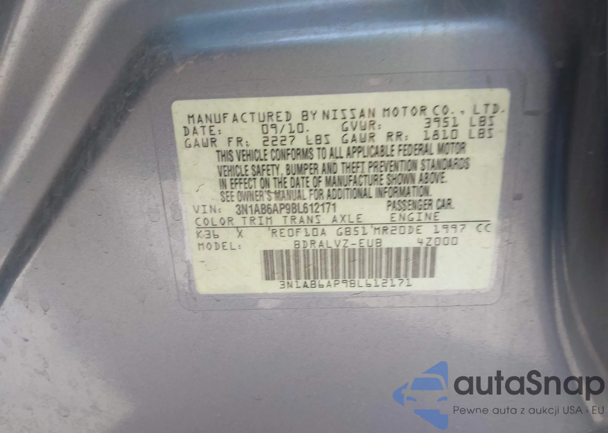 • VIN 3N1AB6AP9BL612171