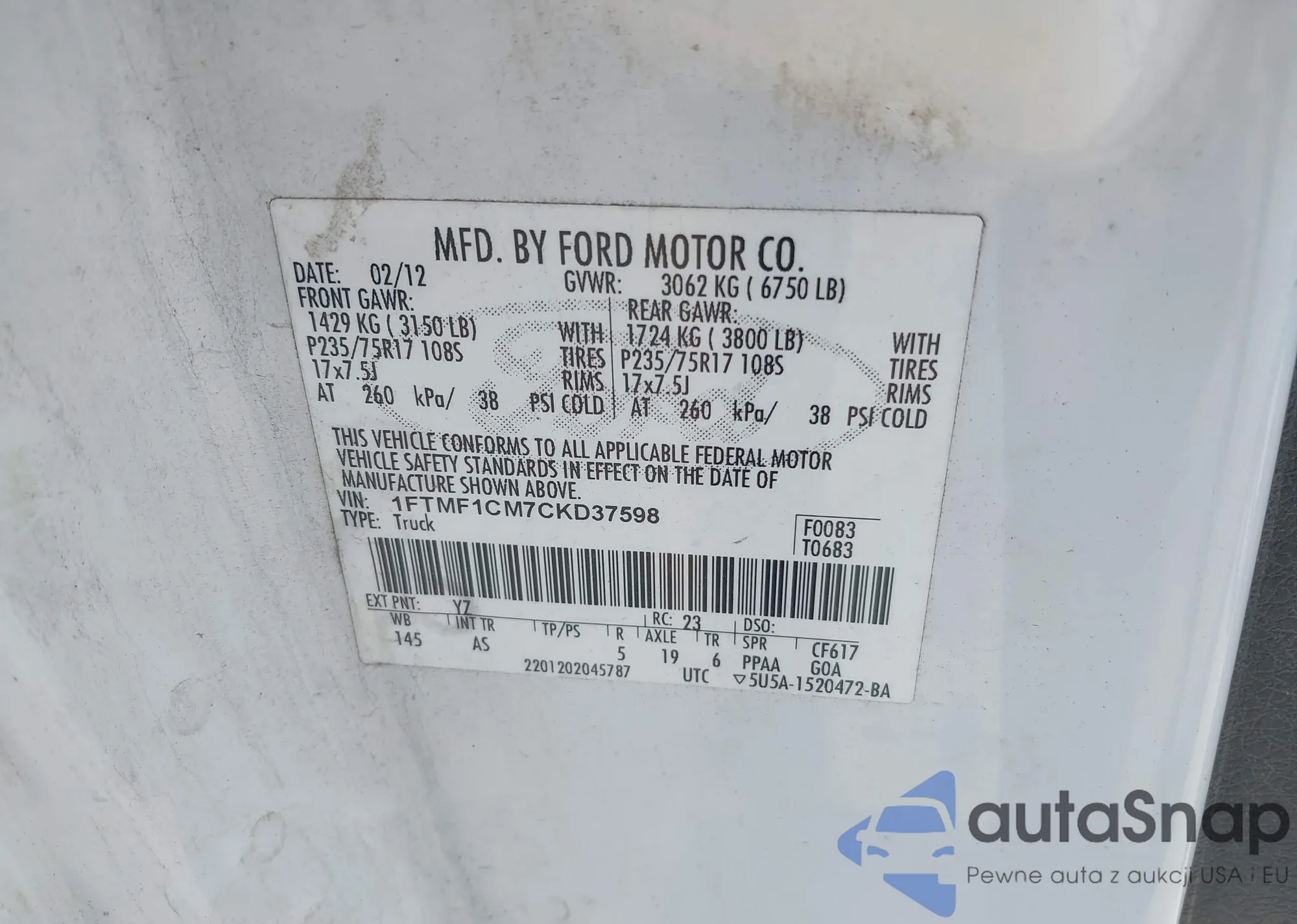 • VIN 1FTMF1CM7CKD37598