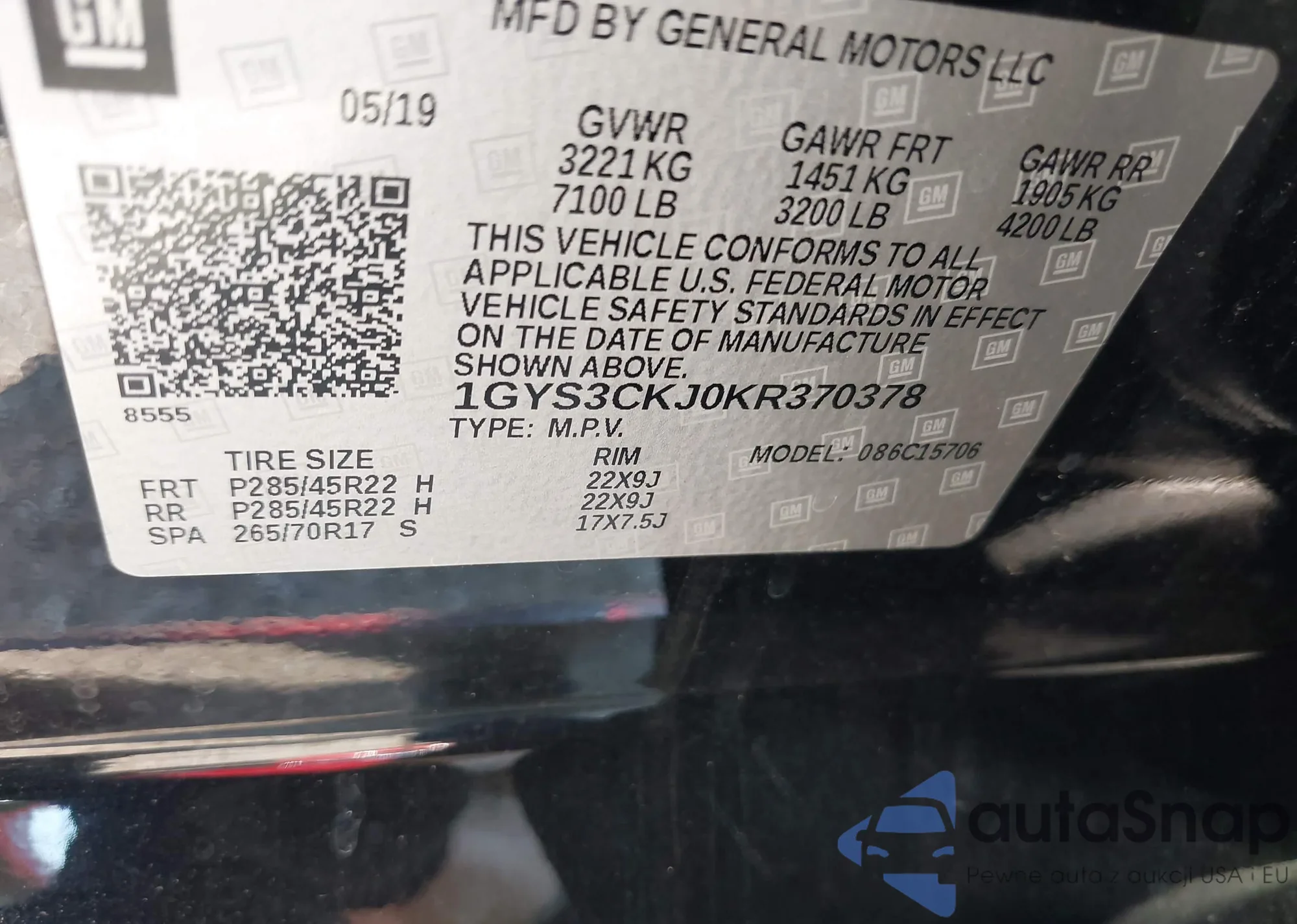 • VIN 1GYS3CKJ0KR370378