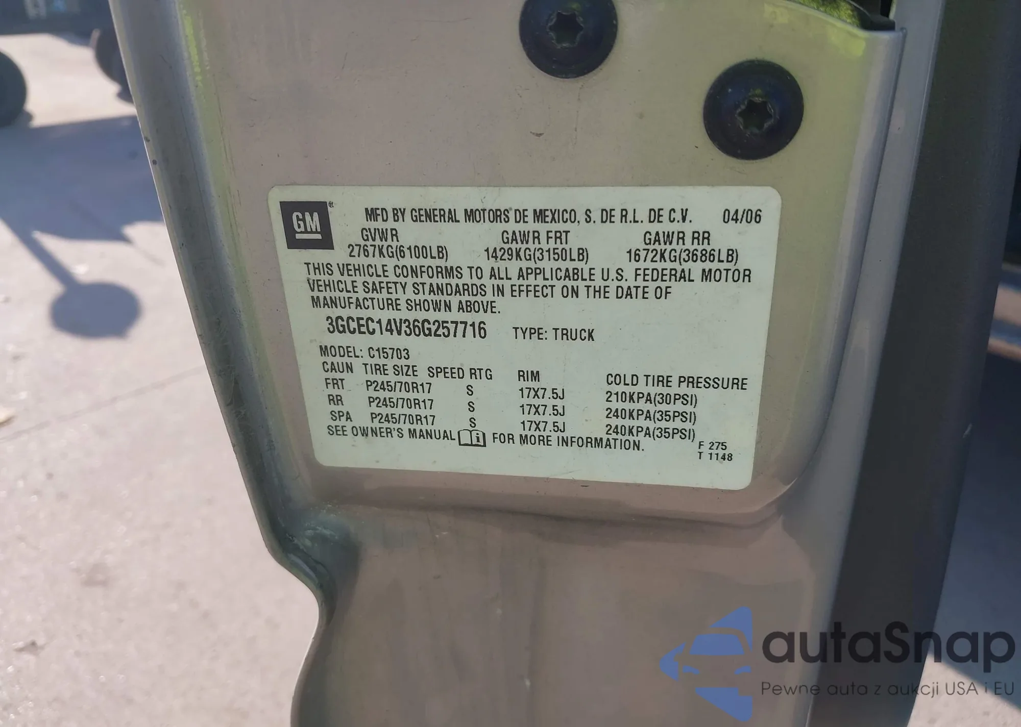 • VIN 3GNEC12Z85G219443