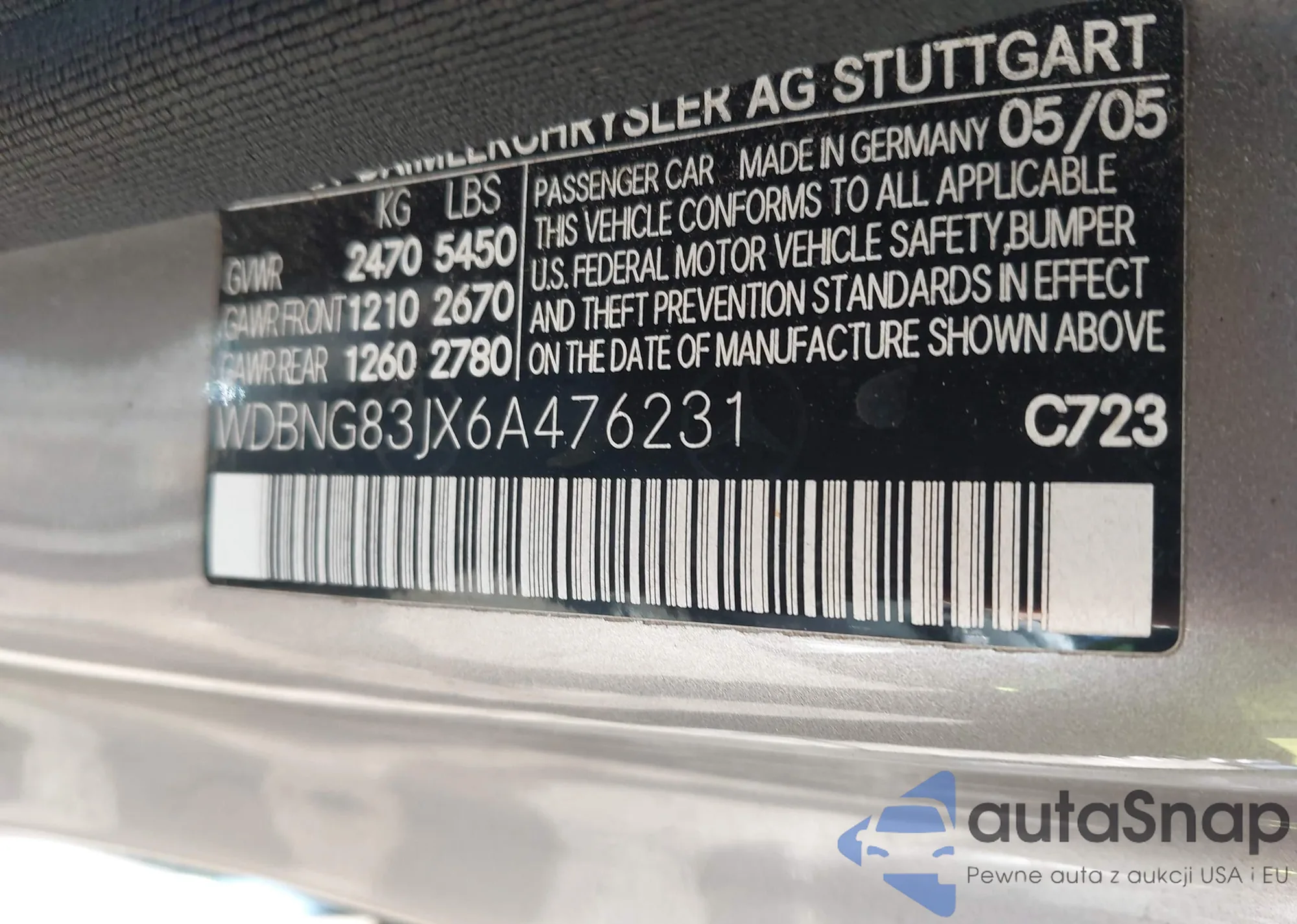• VIN WDBNG83JX6A476231