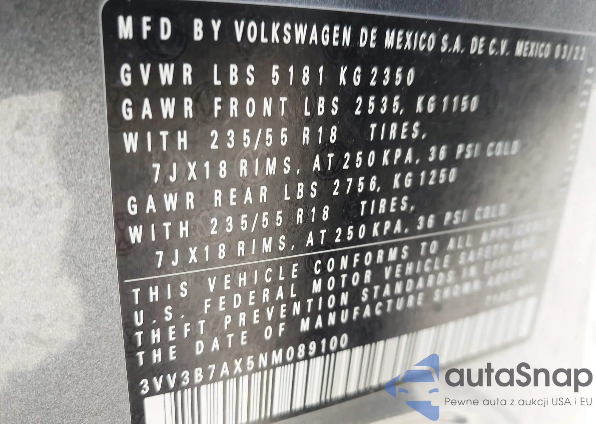 • VIN 3VV3B7AX5NM089100