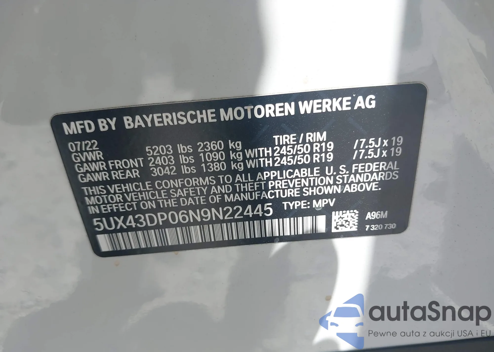 • VIN 5UX43DP06N9N22445