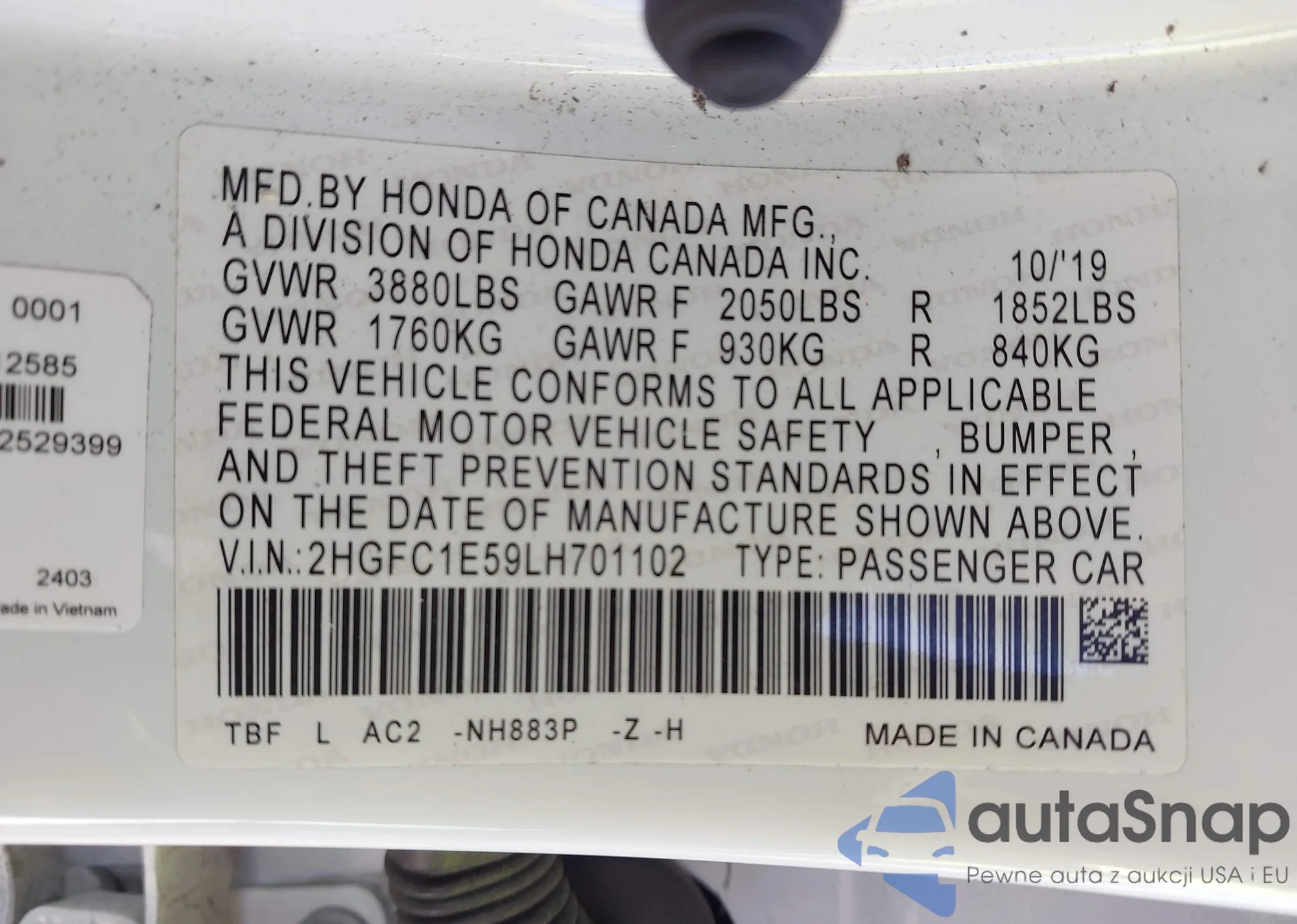 • VIN 2HGFC1E59LH701102