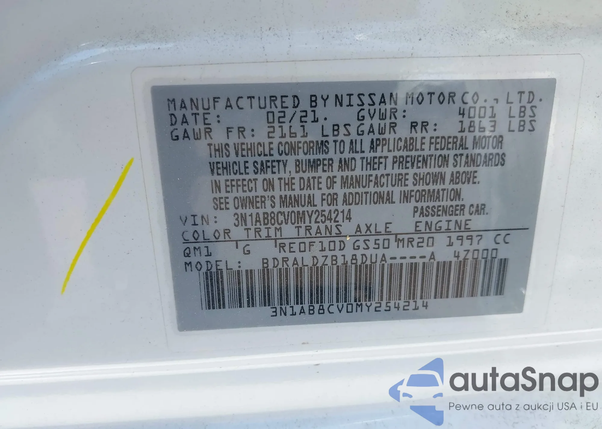 • VIN 3N1AB8CV0MY254214