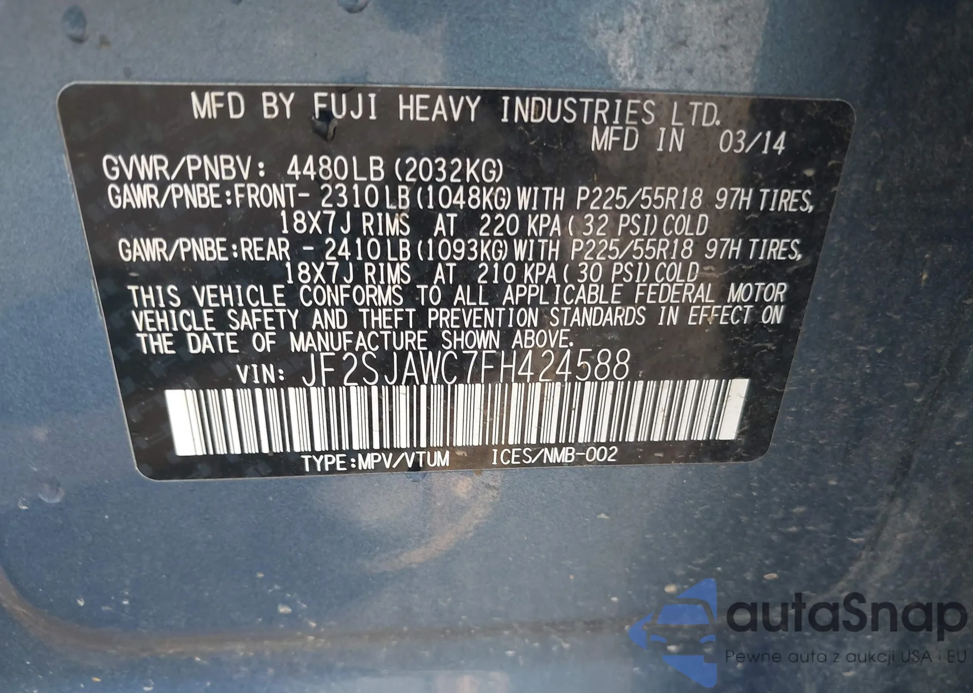 • VIN JF25JAWC7FH424588