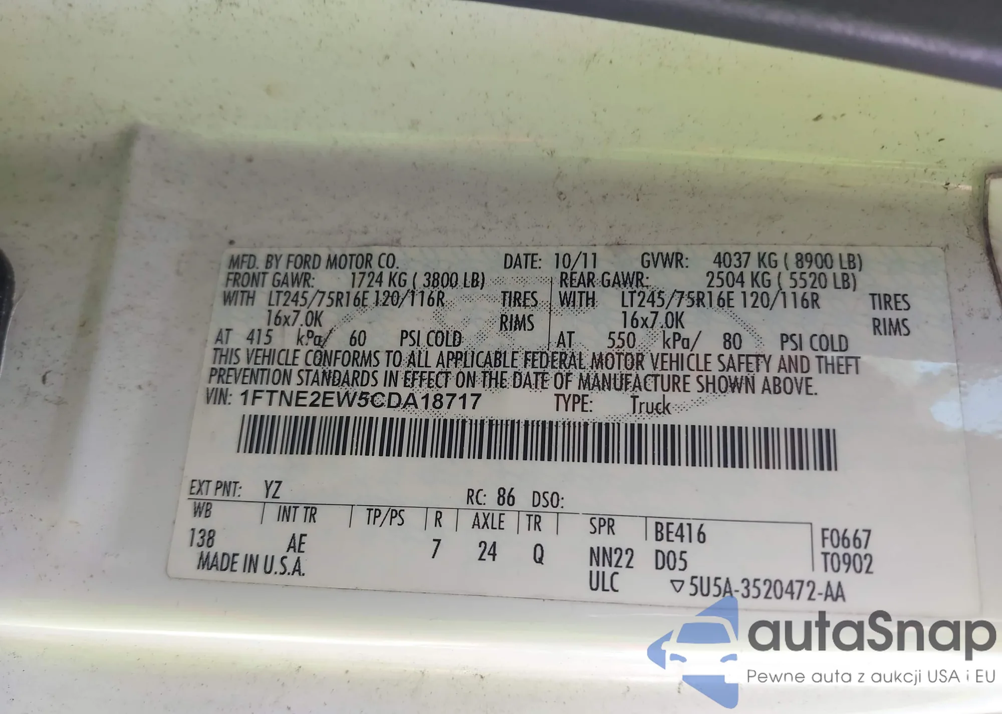 • VIN 1FTFW1ET7DKF92475