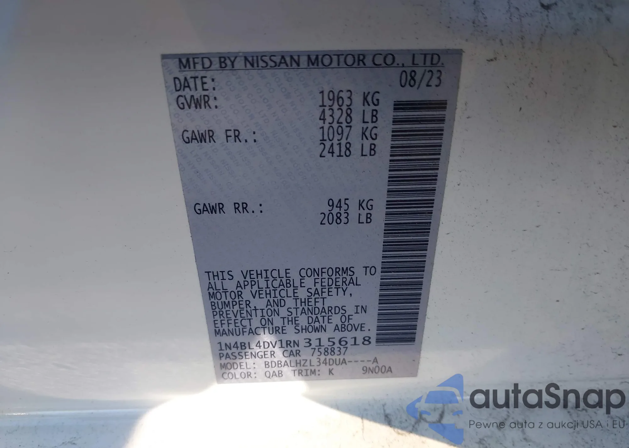 LOT: 43153913 VIN: 3N1AB8CV0MY254214