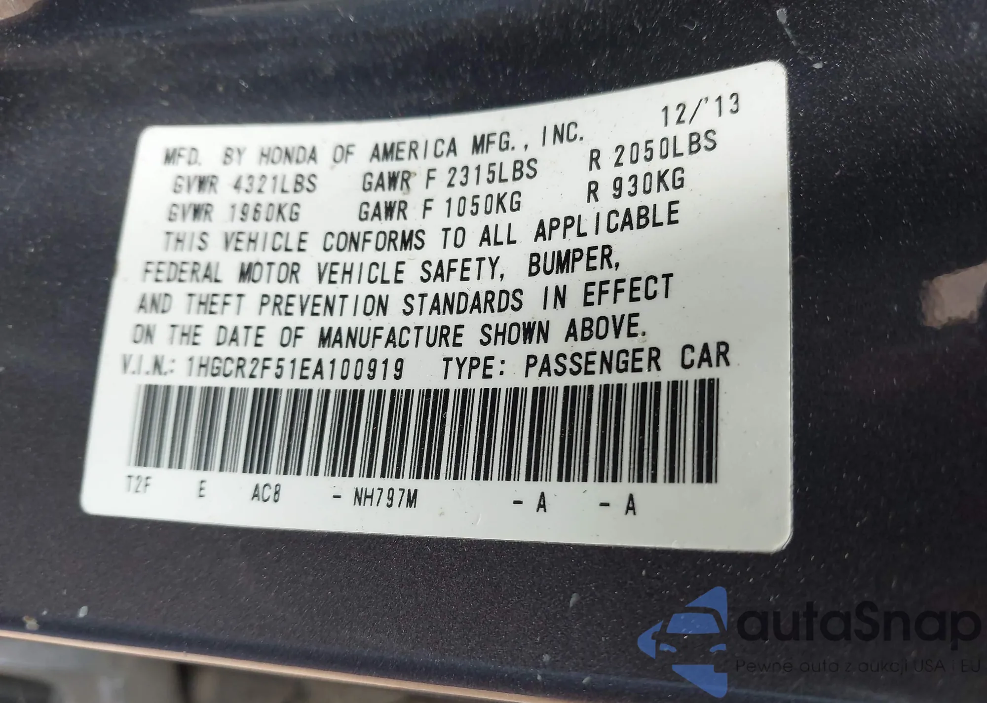 • VIN 1HGCR2F51EA100919
