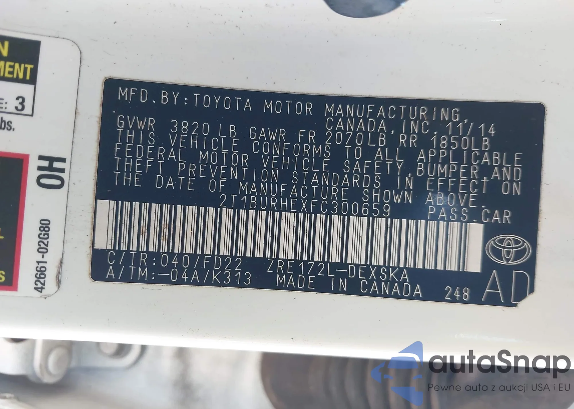 LOT: 43509324 VIN: 2T1BURHEXFC300659