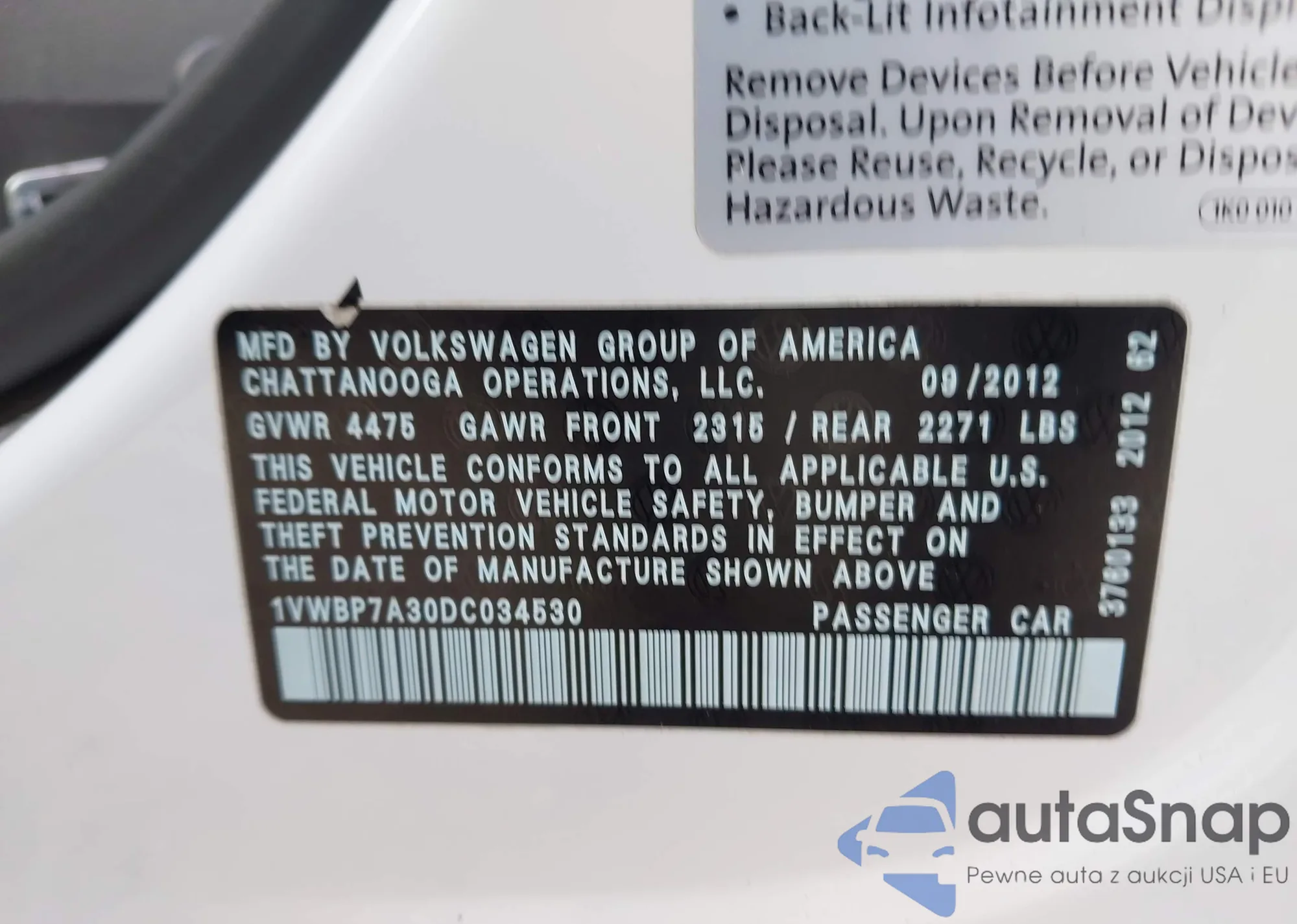 • VIN 19VDE1F70DE011597