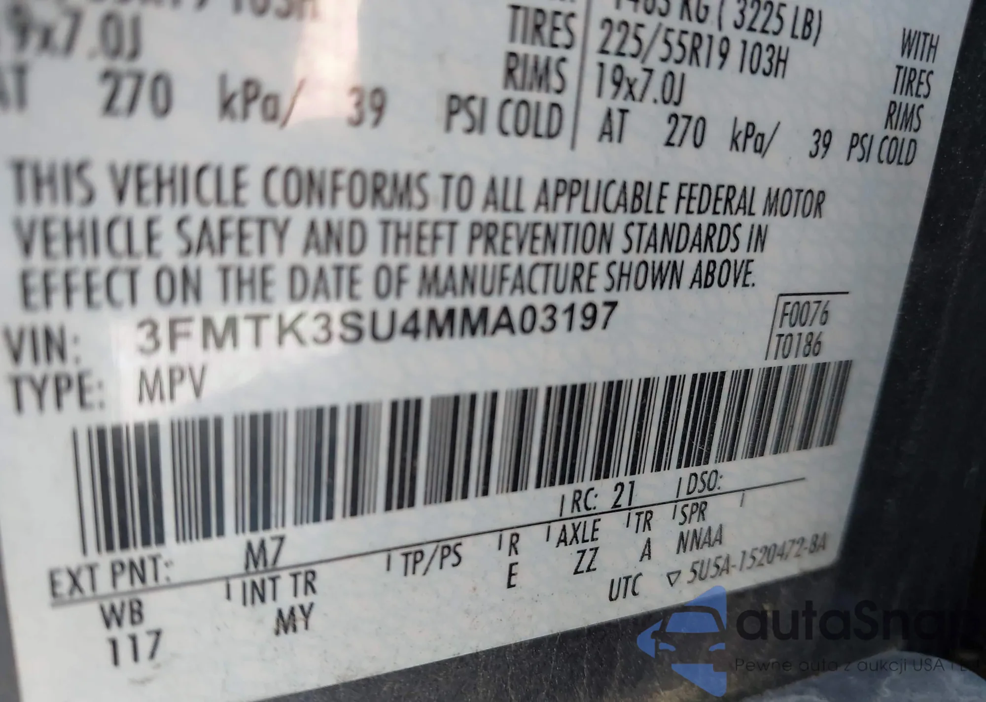 • VIN 3FMTK3SU4MMA03197