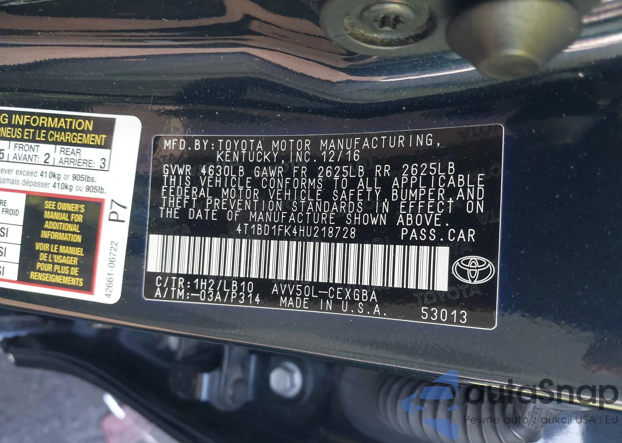 • VIN 4T1BD1FK4HU218728