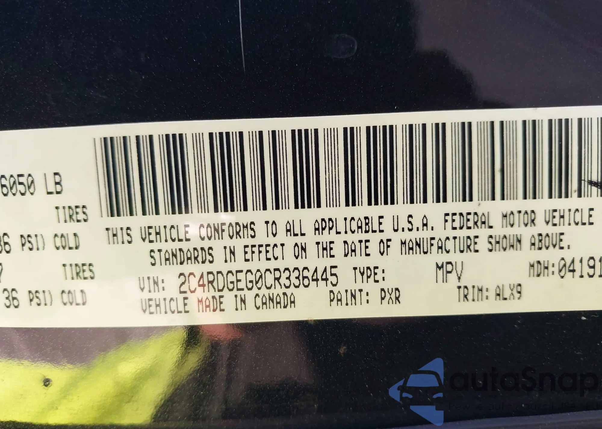 LOT: 43502977 VIN: 2C4RDGEG0CR336445