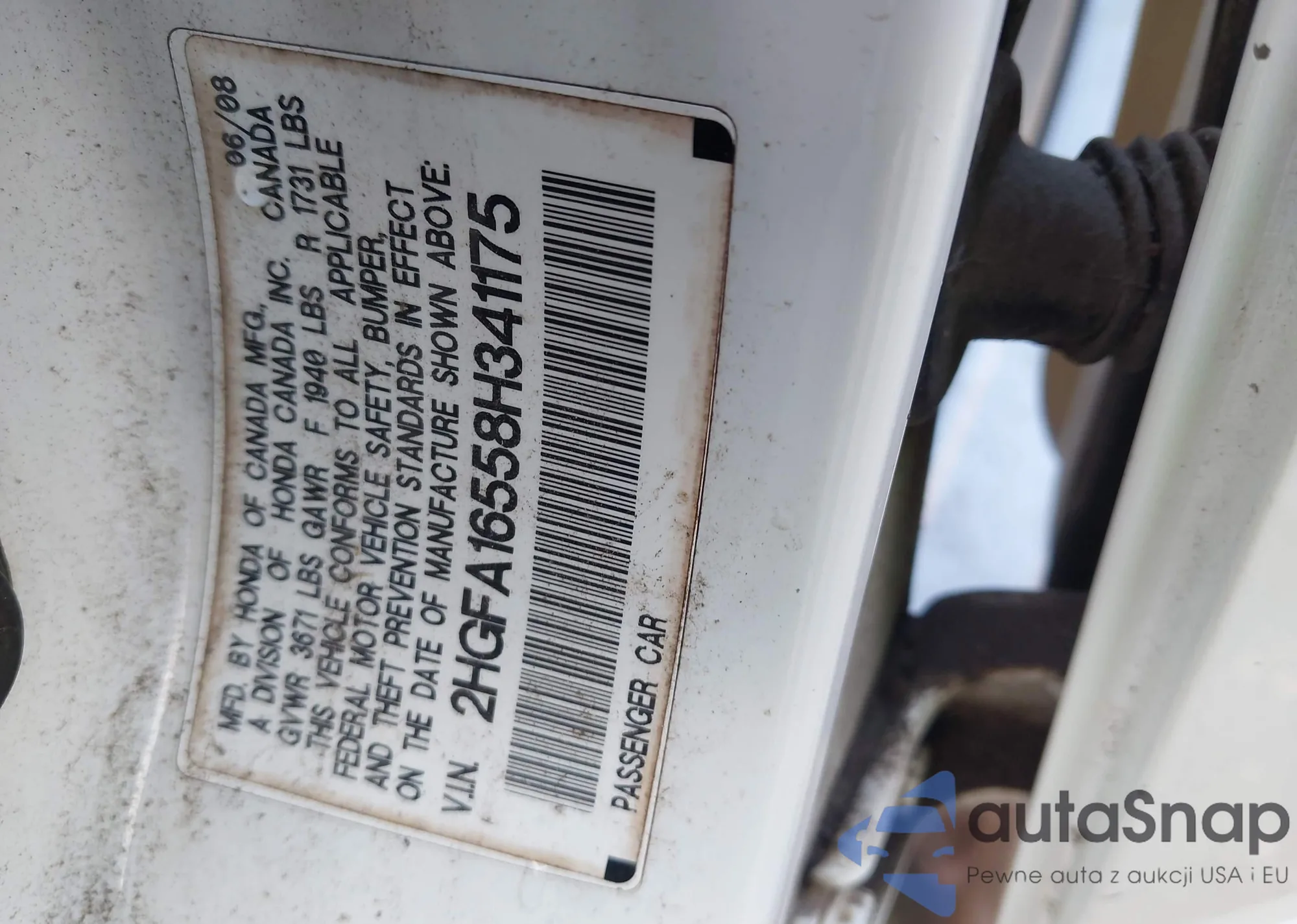 LOT: 43567367 VIN: 2HGFA16558H341175